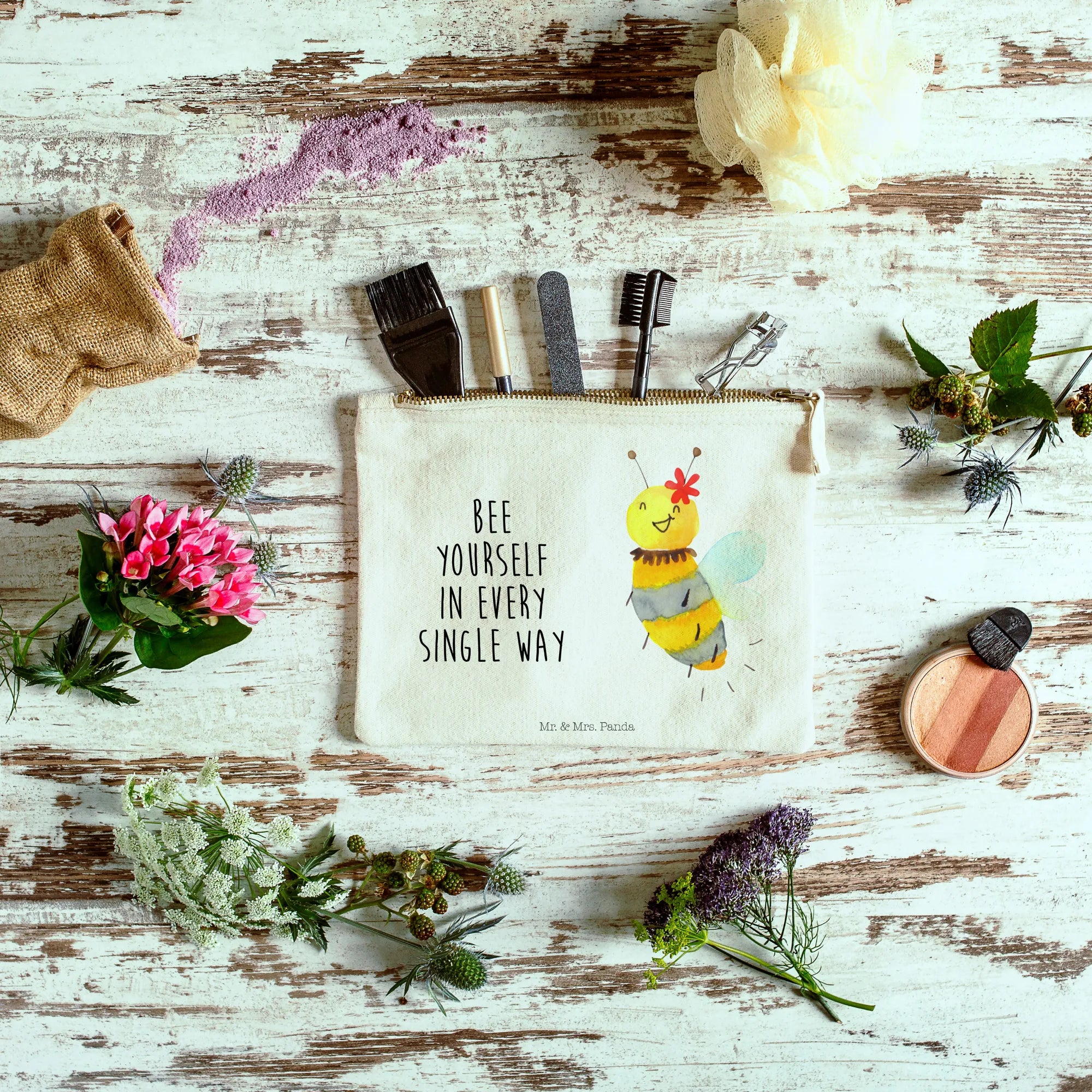 Entdecke die zauberhafte Schminktasche Biene Blume von Mr. & Mrs. Panda, die perfekte Wahl für alle, die das Leben bunt und fröhlich gestalten wollen! Diese hochwertige Kosmetiktasche aus 100% weicher Baumwolle ist nicht nur praktisch, sondern auch ein echter Hingucker. Mit ihrem niedlichen Motiv einer süßen Biene, die vital durch einen bunten Blumenwald fliegt, versprüht sie eine charmante Leichtigkeit, die jeden Tag versüßt. Die Schminktasche bietet genügend Platz für all deine Makeup-Artikel, Kosmetikbeutel oder Stiftemäppchen. Perfekt für den Alltag, Reisen oder einfach als stylisches Accessoire für dein Zuhause.