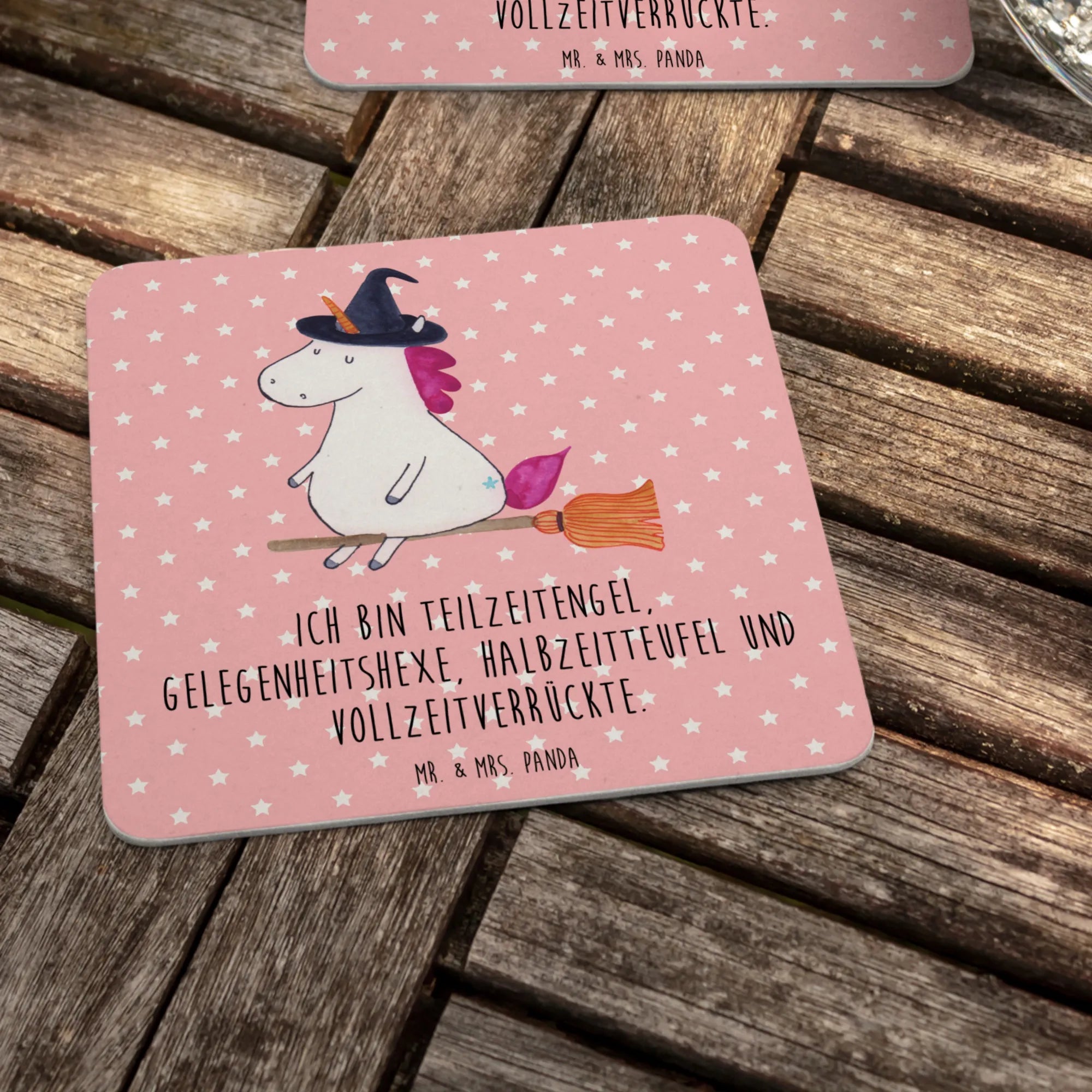 Bierdeckel sind mehr als nur ein praktisches Accessoire, sie sind kleine Kunstwerke für deinen Tisch! Der quadratische Bierdeckel mit dem zauberhaften Motiv "Einhorn Hexe" aus der besonderen Einhorn-Kollektion von Mr. & Mrs. Panda ist der ideale Begleiter für all deine Feierlichkeiten.