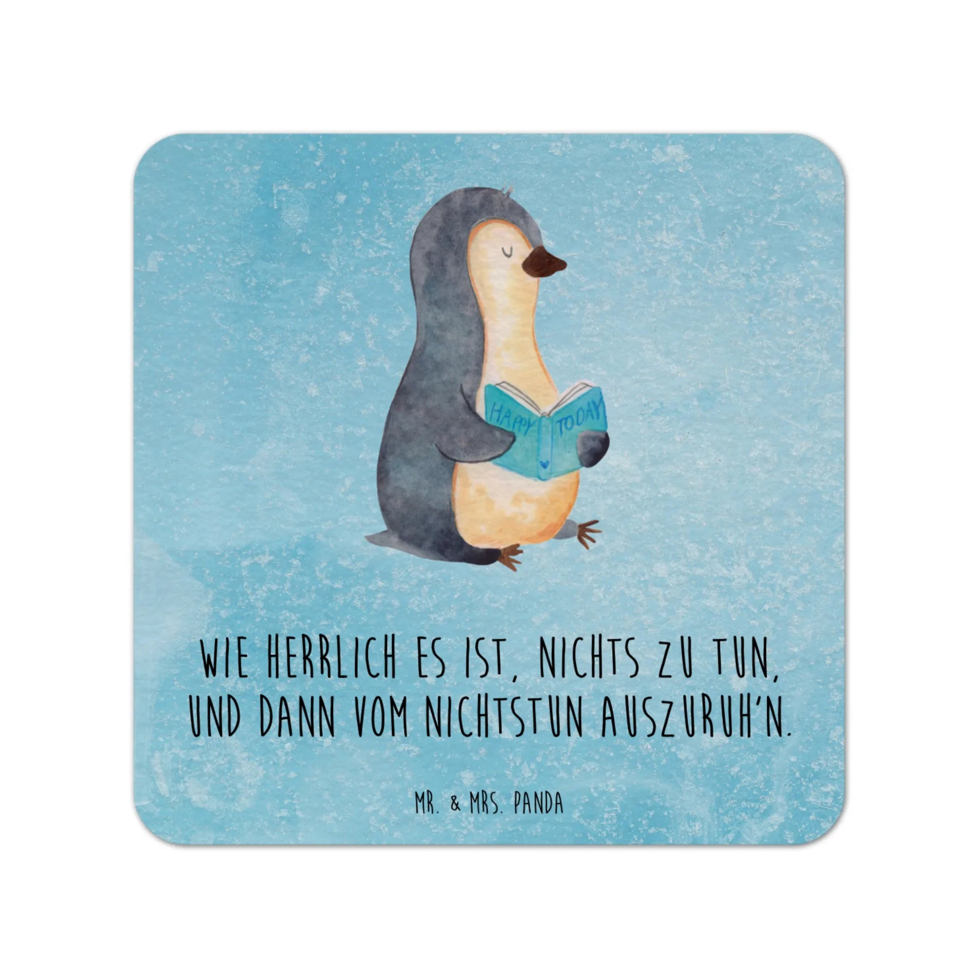 Der quadratische Bierdeckel aus der beliebten Pinguin-Kollektion von Mr. & Mrs. Panda ist das perfekte Geschenk für alle Bücherwürmer und Leseratten! Mit seinem liebevoll gestalteten Motiv eines süßen Pinguins, der fasziniert ein Buch liest, bringt dieser Bierdeckel nicht nur einen Hauch von Gemütlichkeit auf deinen Tisch, sondern stellt auch eine wunderbare Dekoration und Erinnerung an viele besondere Anlässe dar. Wenn Du auf der Suche nach einem Gastgeschenk für eine Hochzeit, einen Geburtstag oder einen Junggesellenabschied bist, dann hast Du mit diesem Produkt genau das Richtige gefunden. Der Slogan "Wie herrlich es ist, nichts zu tun, und dann vom Nichtstun auszuruh'n" spricht dabei besonders diejenigen an, die auch mal die Seele baumeln lassen und in spannende Bücher eintauchen möchten.