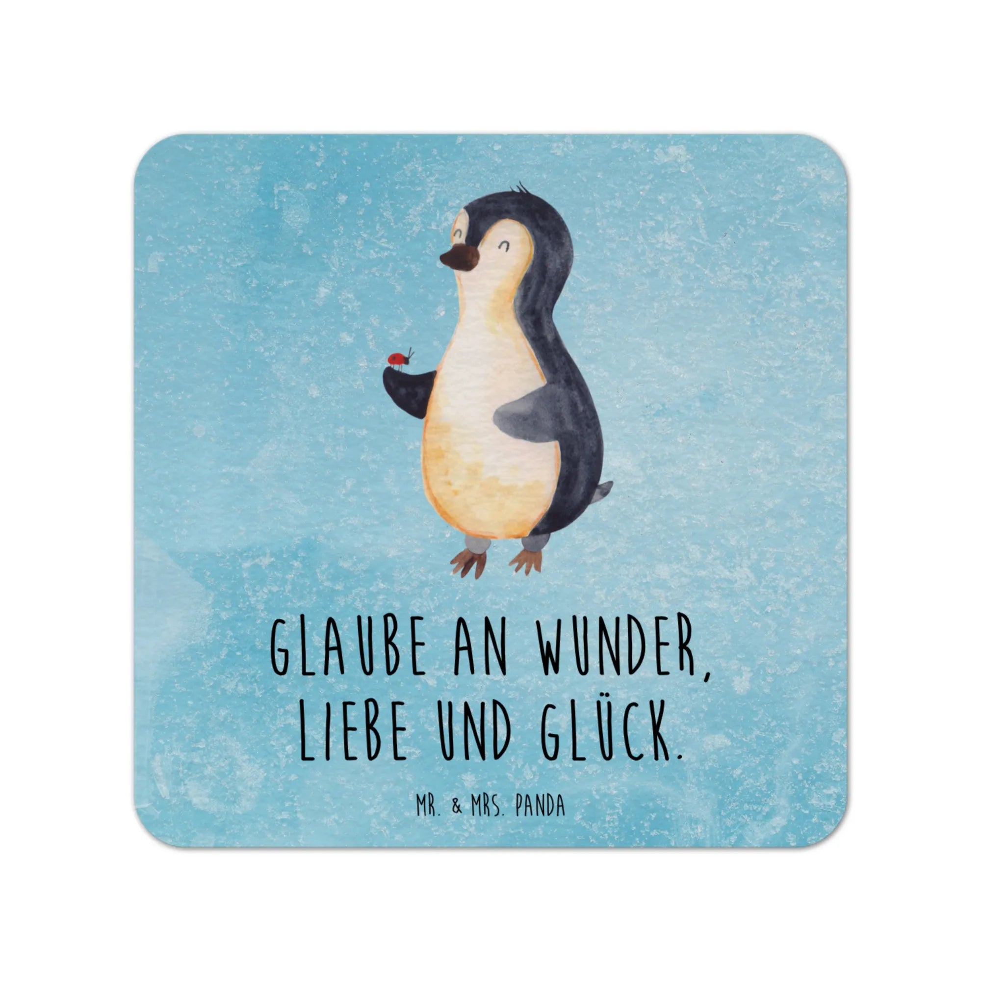 Entdecke den süßen Bierdeckel mit dem fröhlichen Pinguin-Motiv aus der Pinguin-Kollektion von Mr. & Mrs. Panda! Dieser quadratische Bierdeckel ist nicht nur ein echter Hingucker, sondern auch ein praktischer Begleiter für alle Gelegenheiten. Der Bierdeckel schützt deinen Tisch vor unschönen Abdrücken und Kratzern, während der knuddelige Pinguin mit dem lebensfrohen Marienkäfer auf seiner Flosse gute Laune verbreitet. Perfekt geeignet für Hochzeiten, Geburtstagsfeiern, Junggesellenabschiede oder einfach als liebevolles Gastgeschenk. Jeder Deckel trägt den zauberhaften Spruch "Glaube an Wunder, Liebe und Glück." und erinnert dich immer daran, positive Gedanken zu haben.