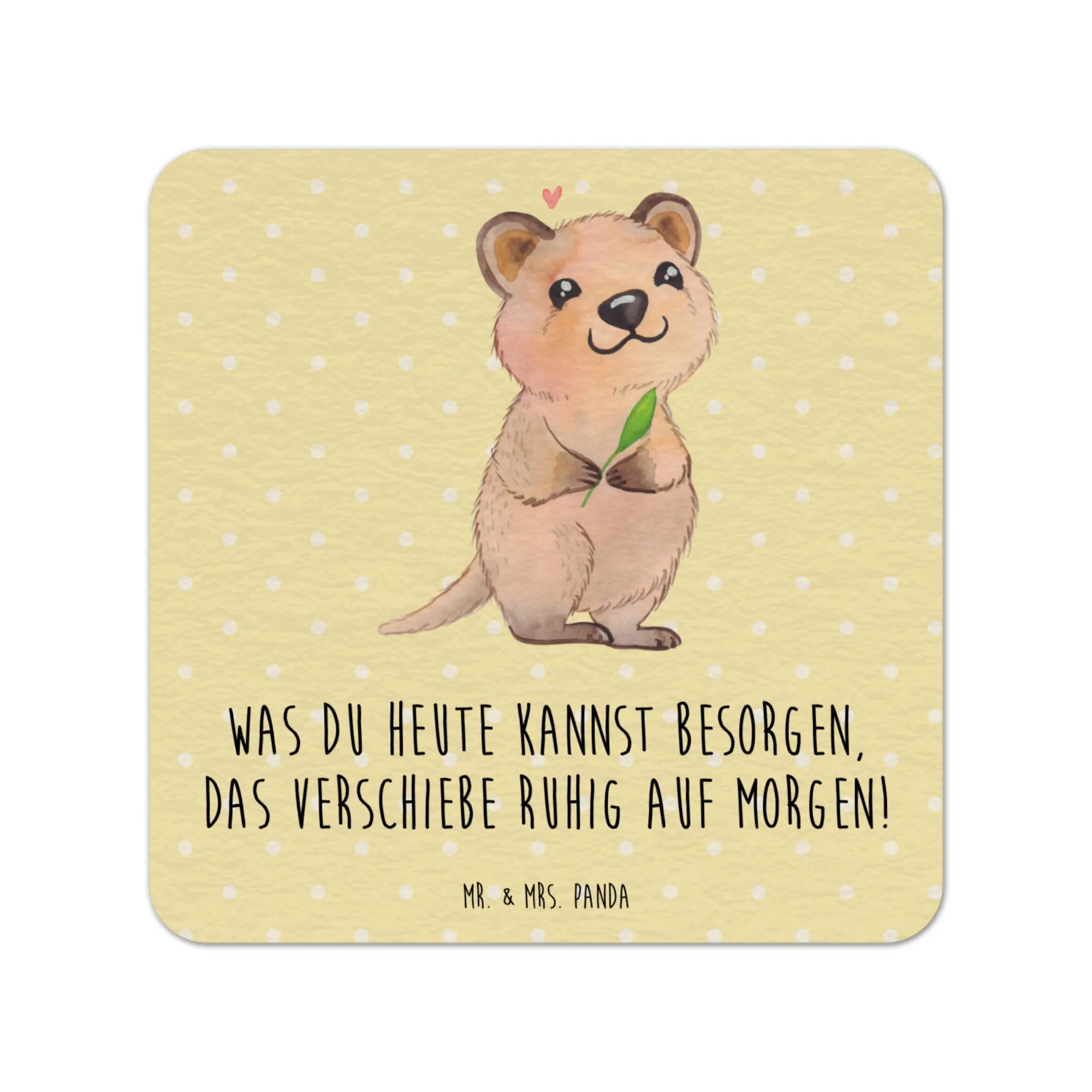 Wir bei Mr. & Mrs. Panda wissen, dass es nicht nur um die Funktion geht, sondern auch um die Freude. Deswegen haben wir diesen Bierdeckel mit einem lustigen Spruch entworfen: "Was du heute kannst besorgen, das verschiebe ruhig auf morgen!" Auch wenn der Spruch nicht auf dem Bierdeckel ist, bringt das niedliche Quokka garantiert ein Lächeln auf Dein Gesicht und sorgt für gute Stimmung!