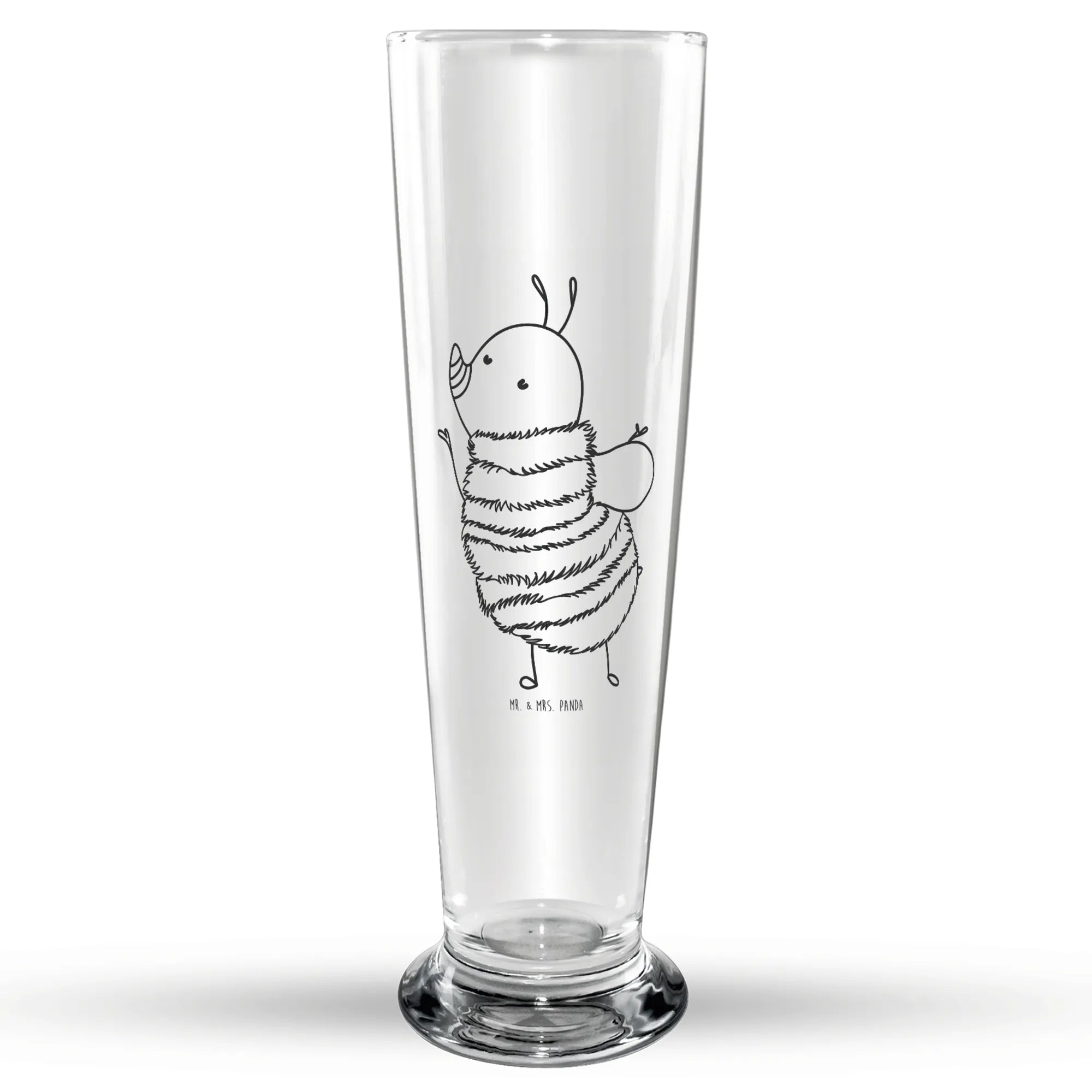Mit einer Höhe von 221 mm und einem Durchmesser von 74 mm fasst es bis zu 300 ml Deines Lieblingsbieres. Das Motiv, das von Mrs. Panda in liebevoller Aquarelltechnik gestaltet wurde, zeigt eine fröhliche Hummel mit einem beigen Spruch: "Hat die Blume einen Knick, war die Hummel wohl zu dick." Diese kleine Lebensweisheit sorgt garantiert für einen Schmunzler bei jedem Biertrinkmoment.