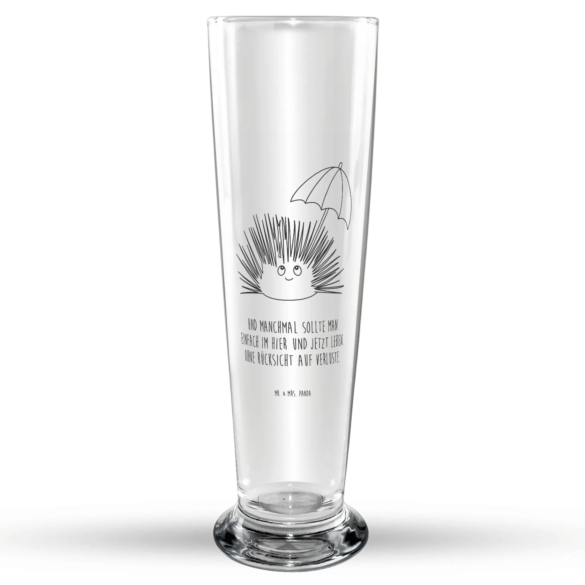 Das wunderschöne Bierglas mit dem niedlichen Seeigel-Motiv aus der Meerestiere-Kollektion von Mr. & Mrs. Panda ist das perfekte Geschenk für alle Bierliebhaber. Ob zum Vatertag, Geburtstag oder einfach als kleine Freude zwischendurch, dieses Gläser-Design bringt ein Lächeln ins Gesicht. Der kleine Seeigel, der mit einem fröhlichen Lächeln und einem rot-weiß gestreiften Schirm zeigt, wie wichtig es ist, im Hier und Jetzt zu leben, sorgt für positive Stimmung bei jeder Bierpause.