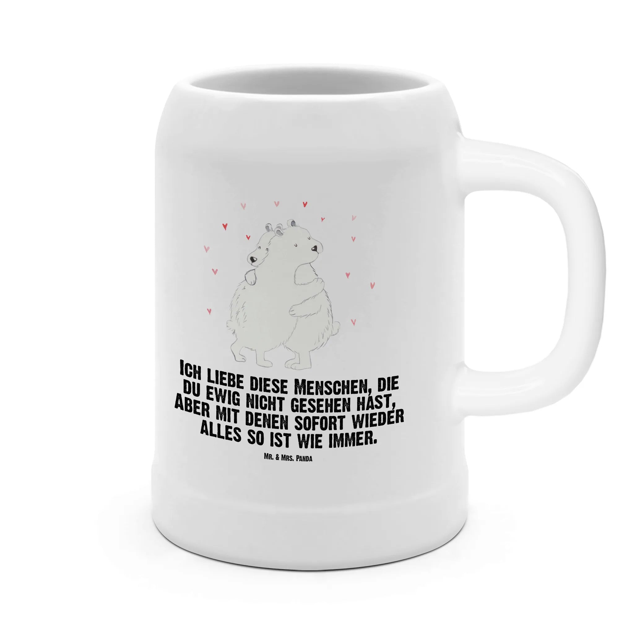Der Bierkrug "Eisbär Umarmen" aus der Kollektion Small World von Mr. & Mrs. Panda ist das perfekte Geschenk für Bierliebhaber und Freunde von niedlichen Tiermotiven. Mit seinem liebevollen Design, das zwei Eisbären zeigt, die sich innig umarmen, vermittelt dieser Krug Freude und Gemütlichkeit.