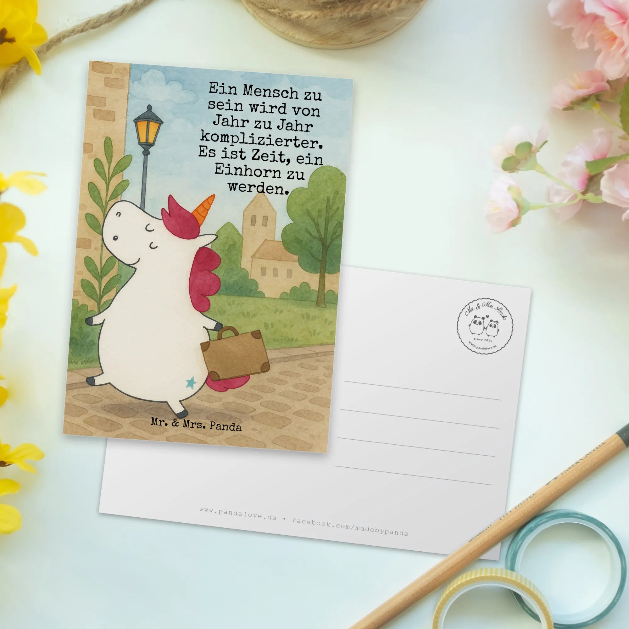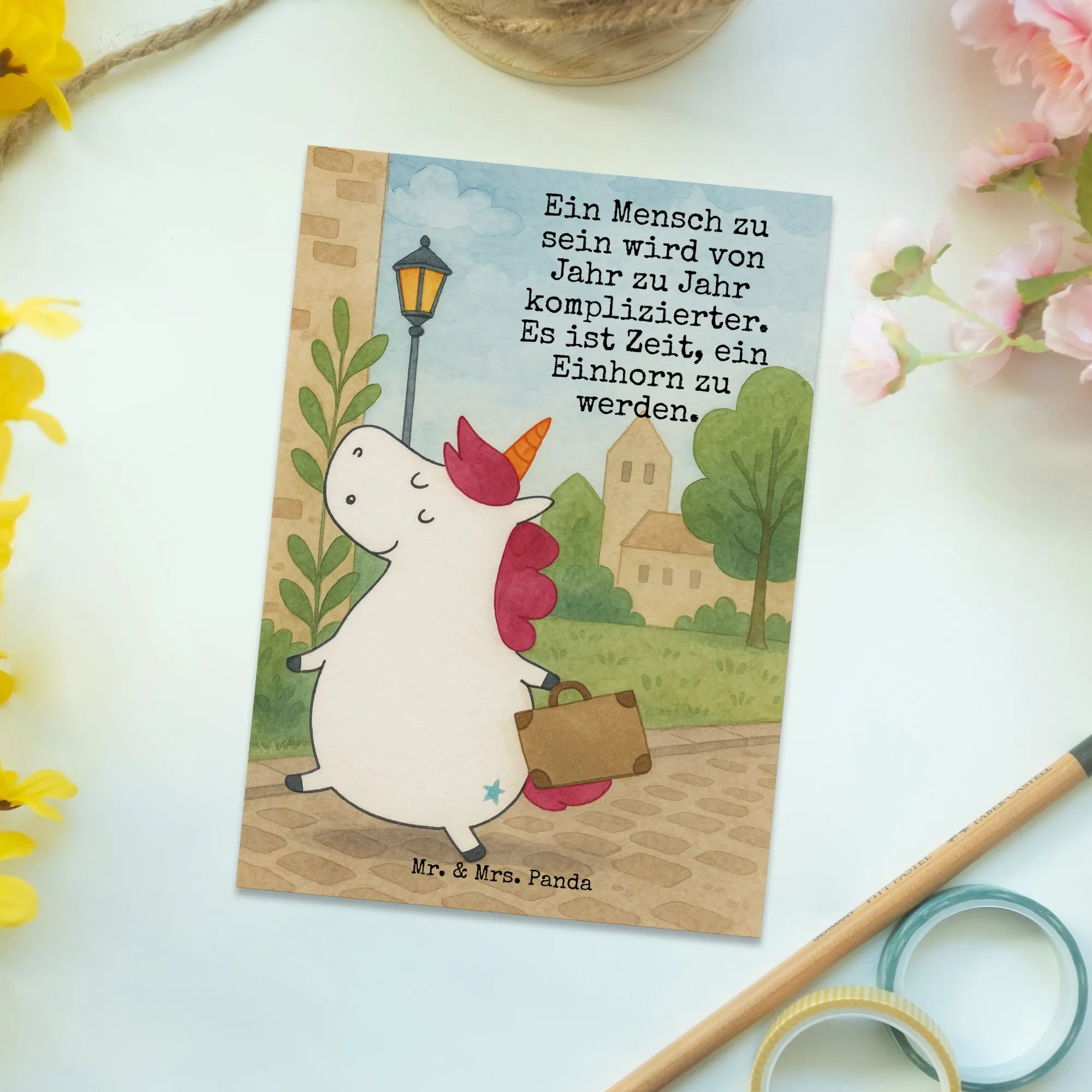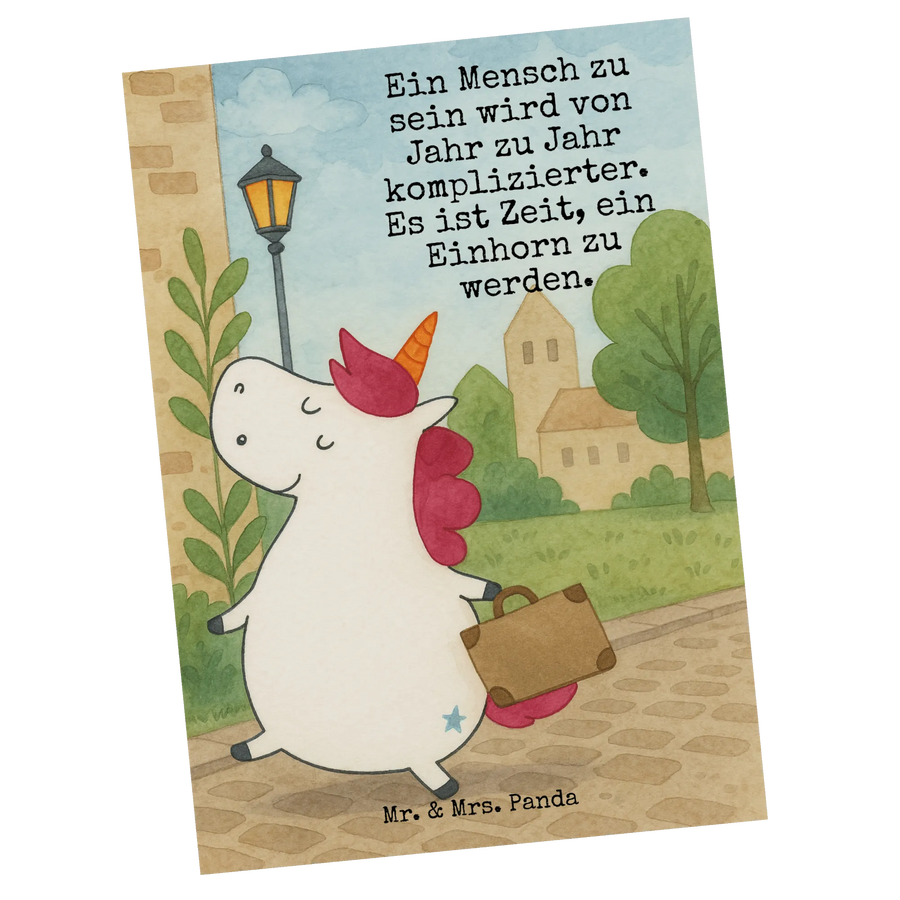 Das liebenswürdige Einhorn mit dem Koffer bringt uns zum Schmunzeln und ermutigt uns zu neuen Abenteuern. 'Ein Mensch zu sein wird von Jahr zu Jahr komplizierter. Es ist Zeit, ein Einhorn zu werden.' Dieser Spruch strahlt einen Aufruf aus, dem Ernst des Lebens mit einem Hauch von Humor zu begegnen. Vergiss die Sorgen – pack deinen Koffer und entdecke die Welt mit einem Lächeln auf dem Gesicht. Lass das Einhorn dich daran erinnern, dass es stets Platz für Träume und Spaß gibt, egal wie alt du bist.