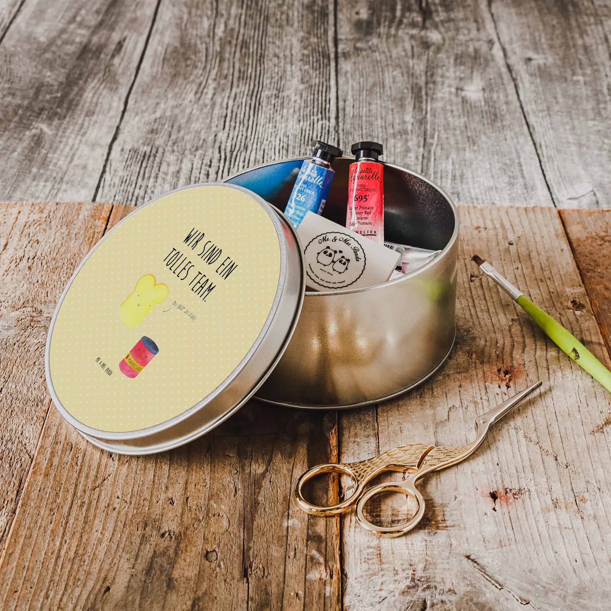 Egal, ob du sie zum Geburtstag, zur Einweihung oder einfach als Überraschung für einen lieben Menschen verschenken möchtest, diese Blechdose strahlt gute Laune aus und vermittelt die Botschaft "Wir sind ein tolles Team." aus der beliebten Small World Kollektion. Jede Dose ist liebevoll mit aquarellierten Illustrationen gestaltet und sorgt für ein Lächeln auf den Lippen.