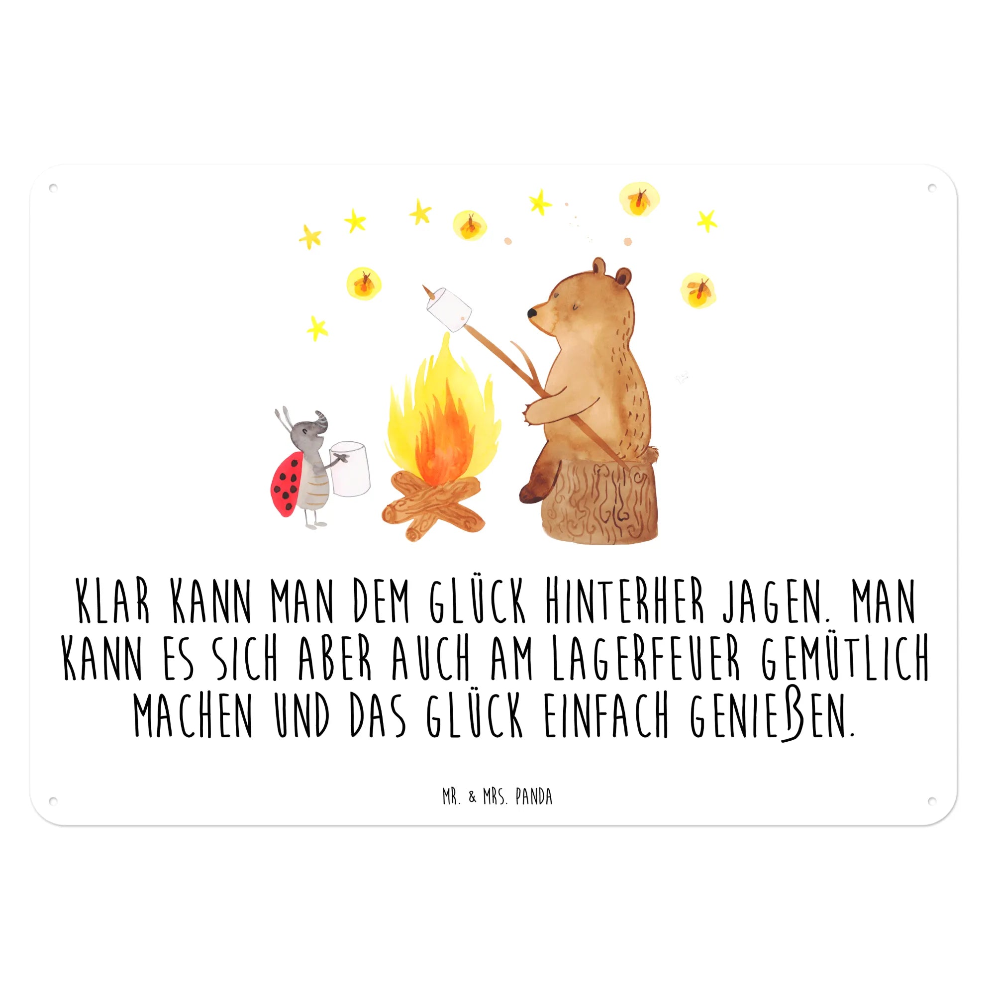Entdecke das charmante Blechschild "Bär & Marienkäfer Lagerfeuer" von Mr. & Mrs. Panda! Dieses wunderschöne und edle Schild ist die ideale Dekoration für dein Zuhause oder ein durchdachtes Geschenk für Bärenliebhaber und Naturfreunde. Das Motiv zeigt einen fröhlichen Bären, der am Lagerfeuer sitzt, während ein Marienkäfer ihm Gesellschaft leistet. Hier wird die positive Botschaft vermittelt: "Klar kann man dem Glück hinterher jagen. Man kann es sich aber auch am Lagerfeuer gemütlich machen und das Glück einfach genießen."