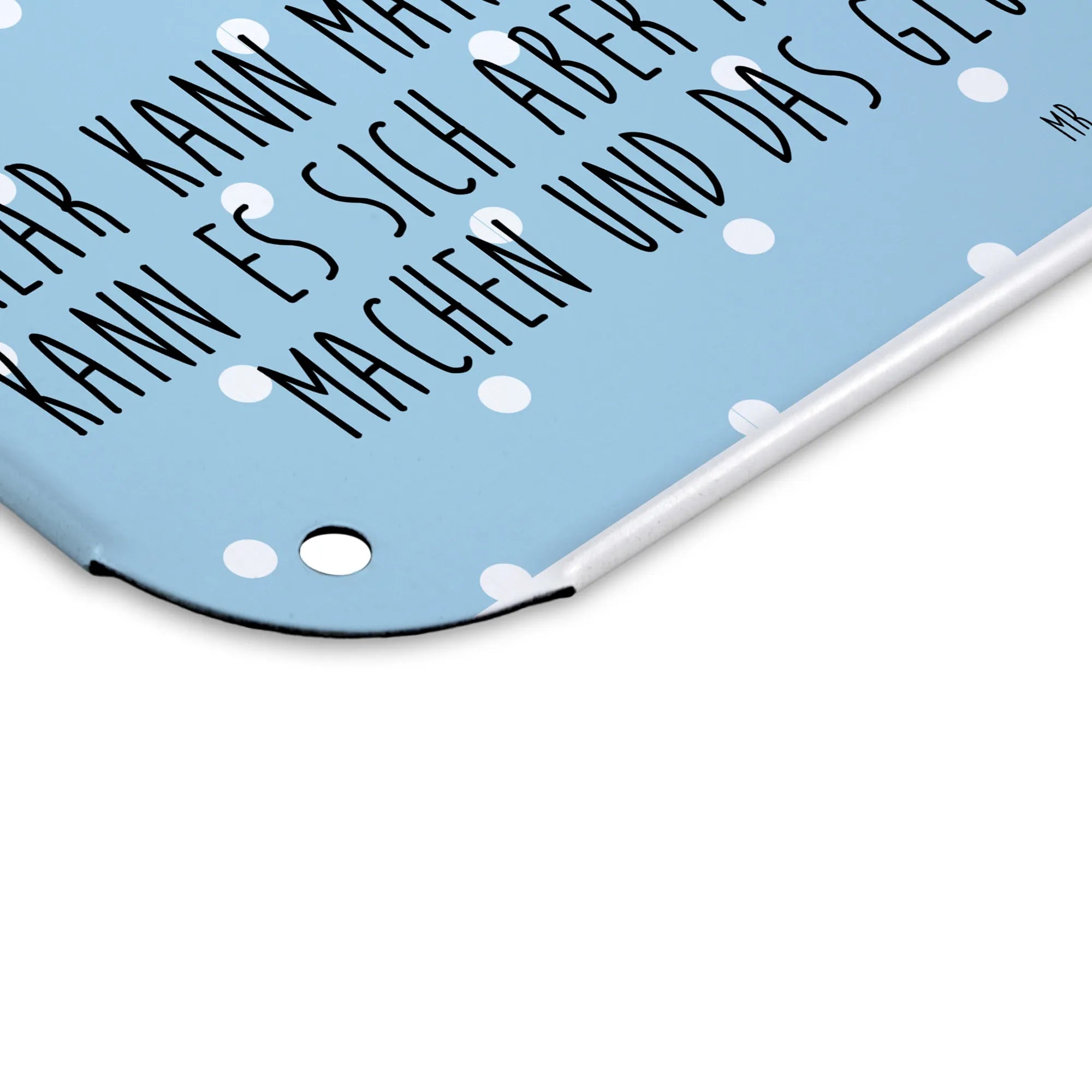 Das perfekte Stück für deine Wohnung: unser hochwertiges Blechschild von Mr. & Mrs. Panda! Mit den eindrucksvollen Maßen 146 mm x 148 mm x 105 mm, strahlt dieses Schild eine besondere Eleganz aus. Das edle Stahlblech ist doppelt beschichtet, sodass es langlebig und resistent gegen Verfärbungen bleibt. Der kreative Druck mit süßen Motiven und griffigen Sprüchen bringt Freude in jeden Raum und eignet sich hervorragend als Geschenkoption. Die seidenmatte Oberfläche wertet nicht nur das Schild selbst auf, sondern macht es auch zu einem zeitlosen Accessoire. Ob an der Wand oder der Tür - die Anbringung ist dank der 4 bereits vorgebohrten Löcher besonders einfach. Kanten und Ecken sind abgerundet und bilden somit ein sicheres Design für dein Zuhause. Dieses Blechschild passt perfekt in jeden Innenraum und lässt sich mühelos mit einem feuchten Tuch reinigen. Verfügbar in verschiedenen Größen, um sich harmonisch in dein Ambiente einzufügen.