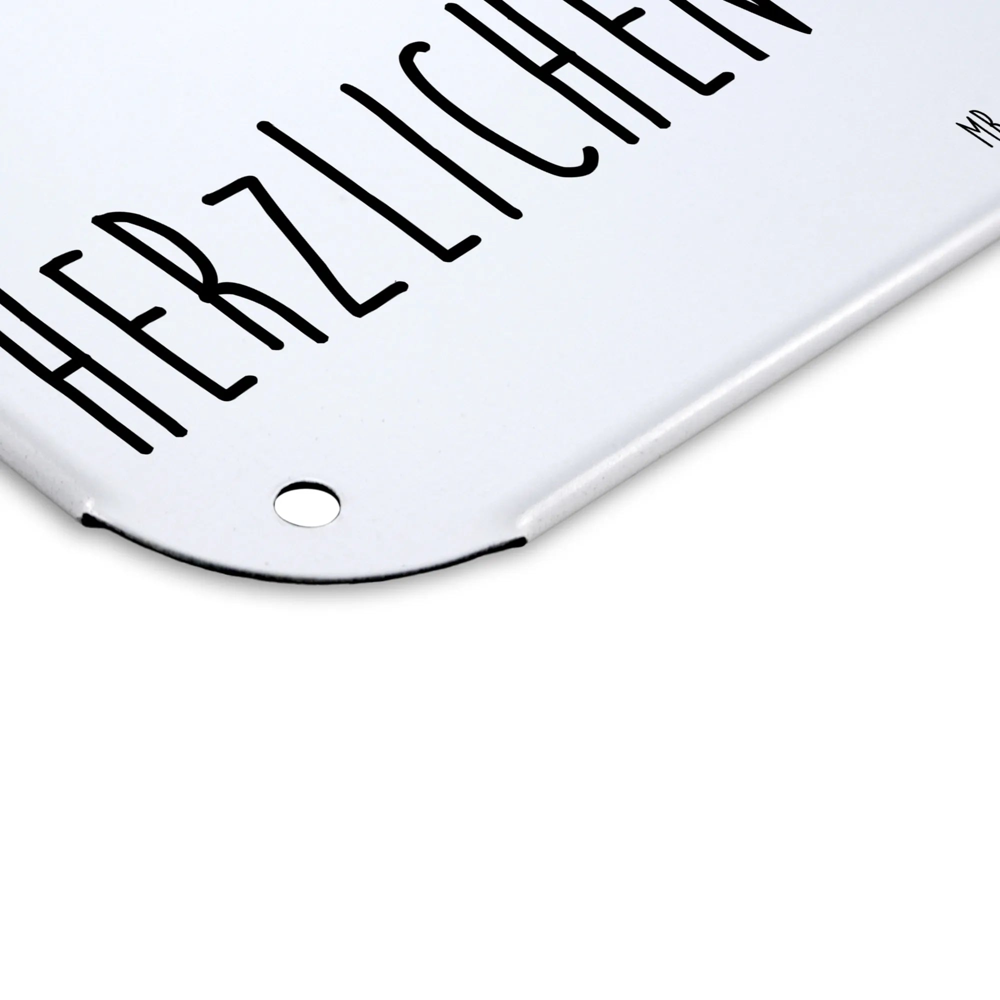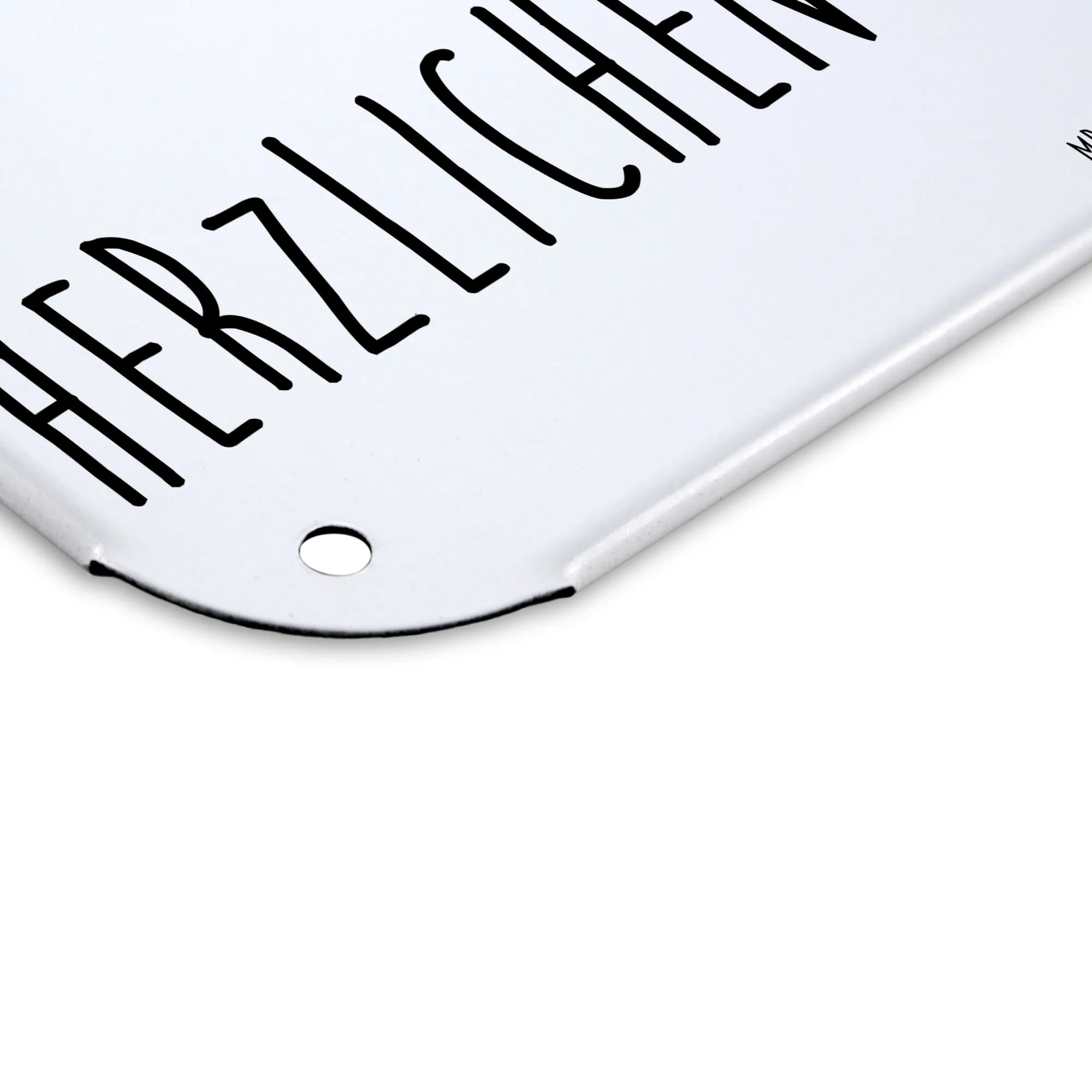 Schaffe eine einladende Atmosphäre mit diesem charmanten Blechschild von Mr. & Mrs. Panda! Mit seinen Maßen 146 mm x 297 mm x 210 mm ist es der ideale Begleiter für jede Wand oder Tür und bringt einen Hauch von Freude in dein Zuhause. Gefertigt aus hochwertigem Stahlblech, überzeugt das Schild durch seine Langlebigkeit und edlen Druck, der in seidenmattem Finish erstrahlt. Die abgerundeten Ecken und gefalzten Kanten sind nicht nur ein Blickfang, sondern sorgen auch für deine Sicherheit. Für die einfache Montage sind 4 Bohrungen vorhanden. Besonders vielseitig – ob als Deko oder als Gedicht für die besten Freunde, dieses Schild wird die Herzen höher schlagen lassen. Leicht zu reinigen ist es zudem mit nur einem feuchten Tuch wieder auf Vordermann gebracht. Bring das gute Gefühl von Mr. & Mrs. Panda in dein Zuhause!