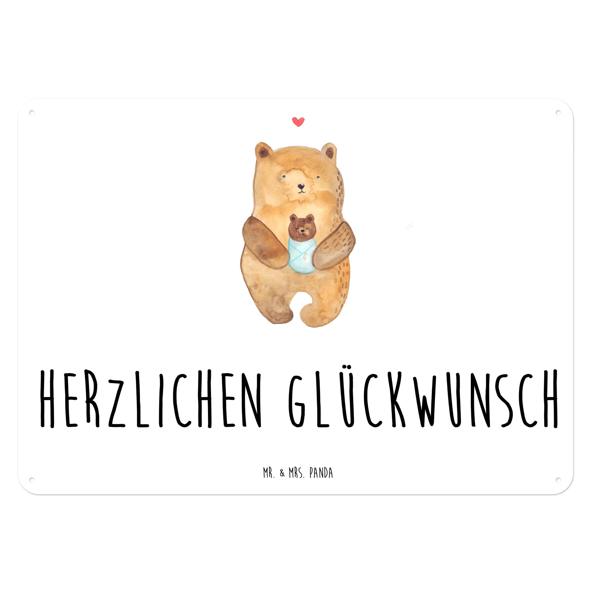 Suchst du das perfekte Geschenk für frischgebackene Eltern, Tauffeiern oder Geburtstagsfeiern? Dann ist unser edles Blechschild "Bär mit Baby" von Mr. & Mrs. Panda genau das Richtige für dich! 🐻💖