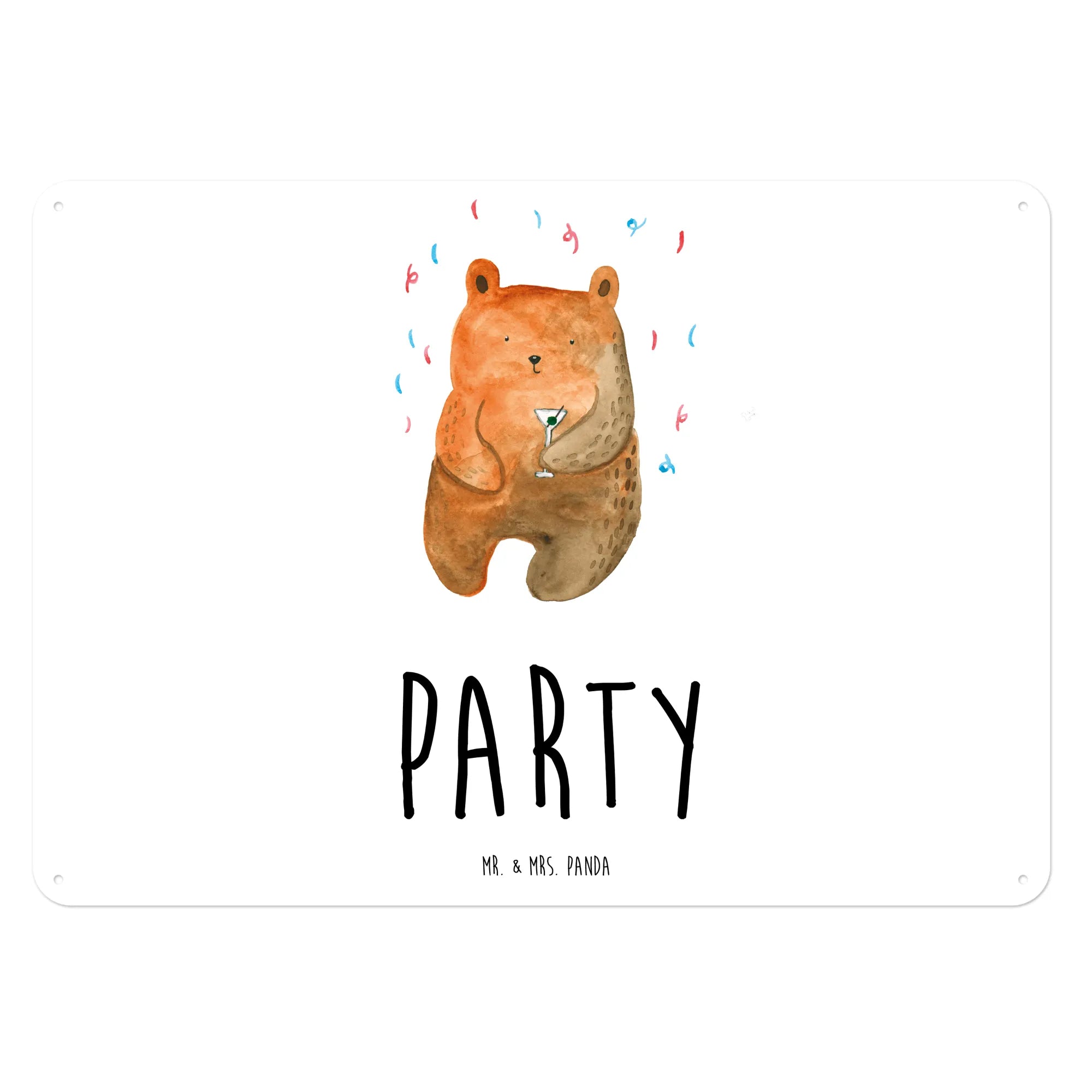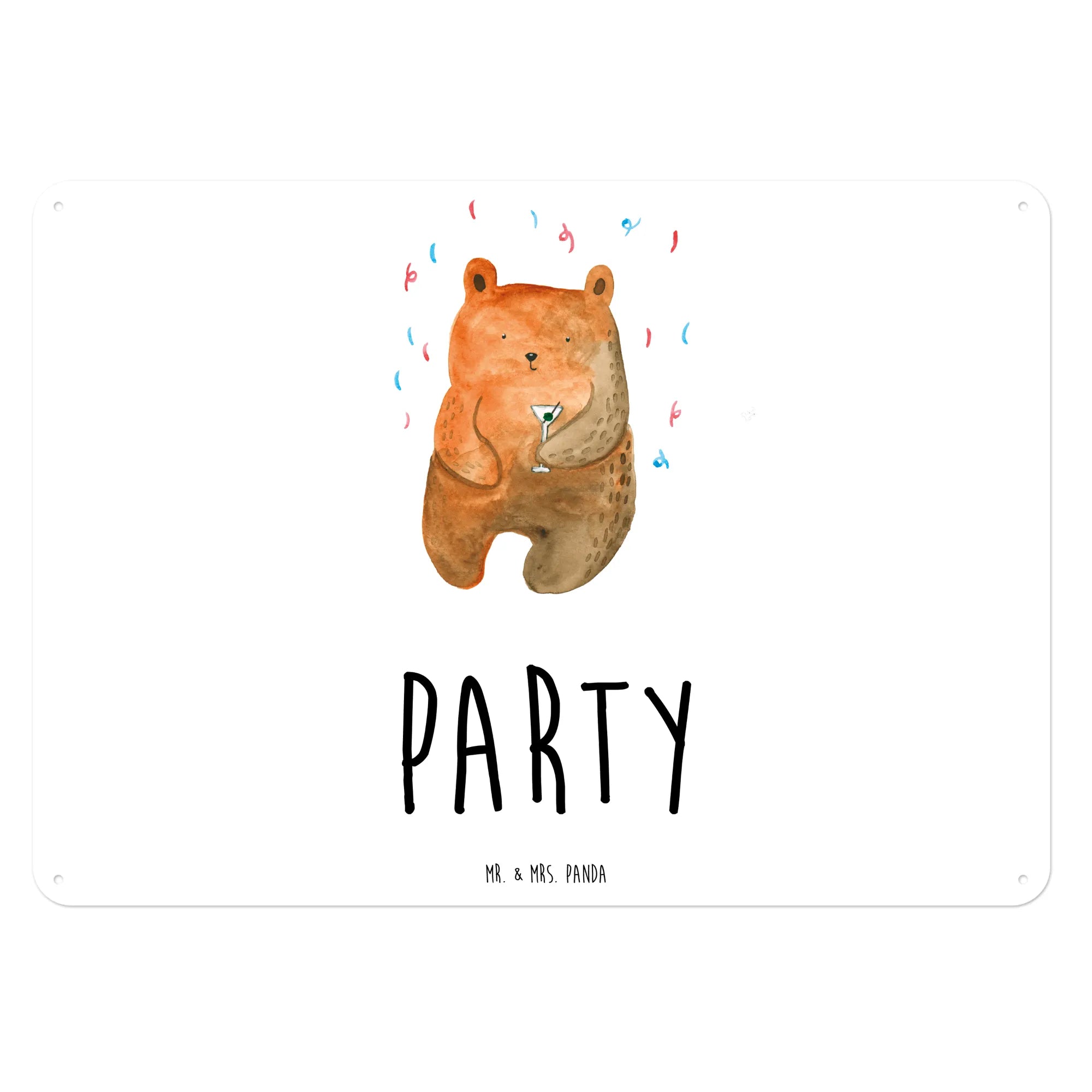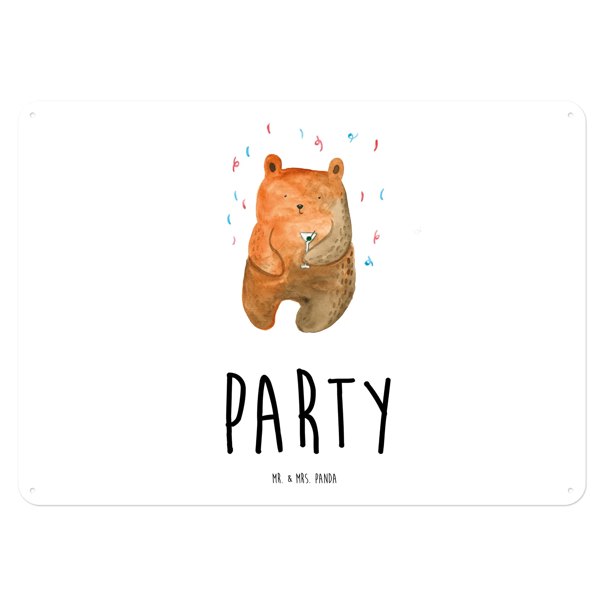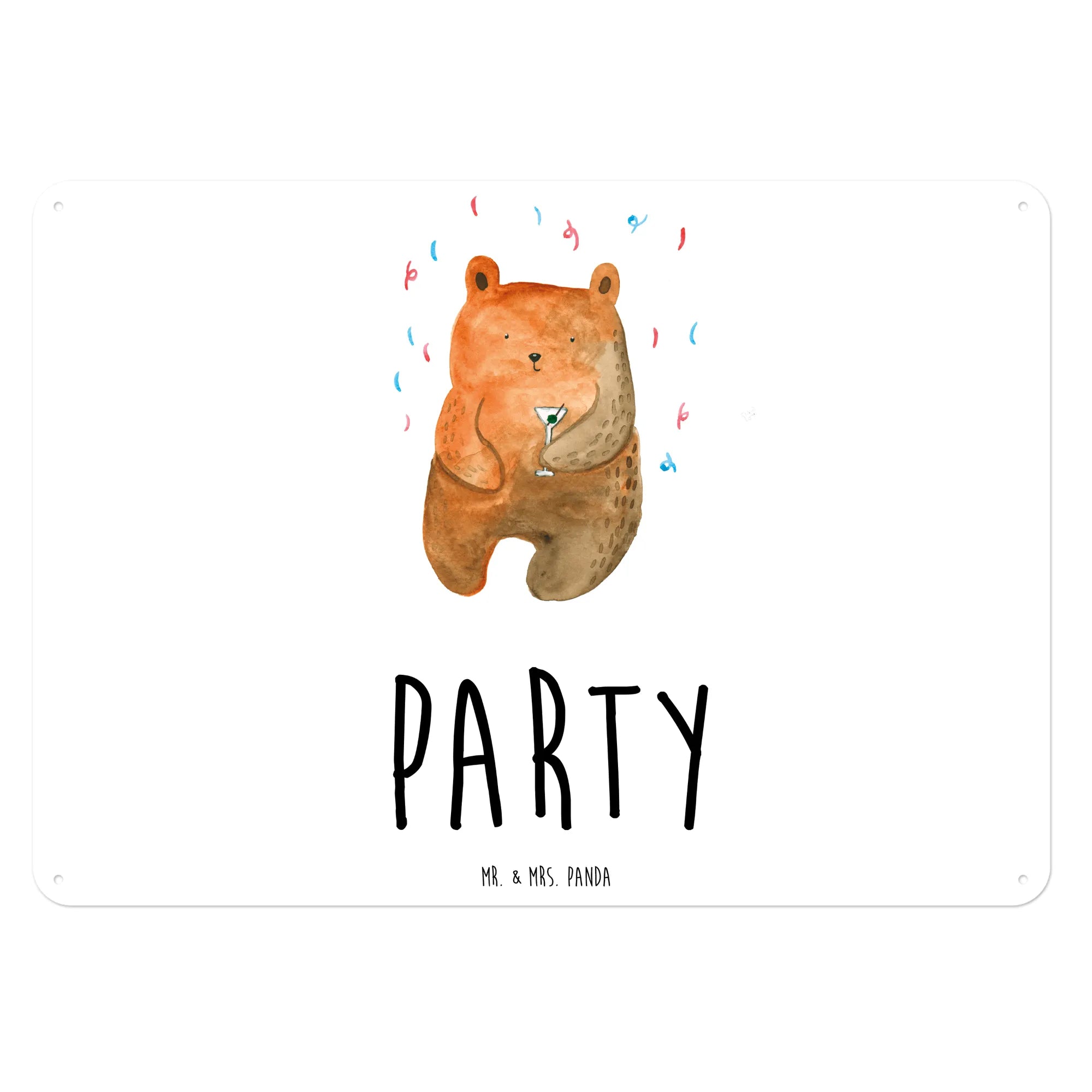 Dieses wunderschöne Blechschild mit dem niedlichen Bär-Motiv "Party" von Mr. & Mrs. Panda ist das perfekte Geschenk für alle Feierfreunde! 🎉 Es strahlt gute Laune und Freude aus und bringt Farbe in jedes Zuhause. Die liebevoll gestaltete Illustration zeigt einen fröhlichen Bären mit einem Partyhütchen, der bereit ist, die beste Zeit seines Lebens zu feiern.