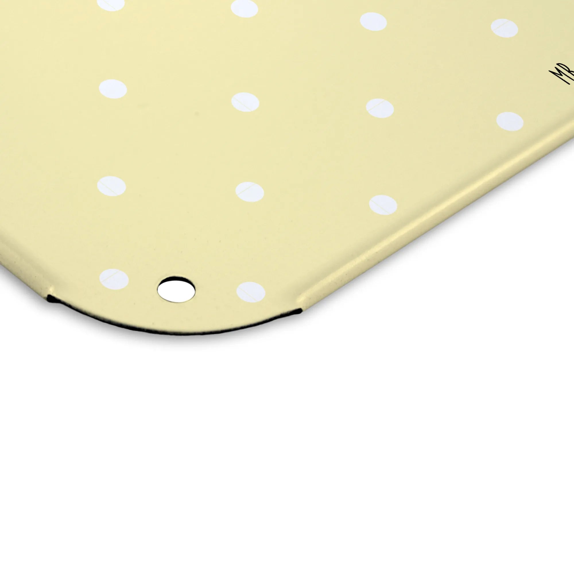 Das perfekte Stück für deine Wohnung: unser hochwertiges Blechschild von Mr. & Mrs. Panda! Mit den eindrucksvollen Maßen 146 mm x 148 mm x 105 mm, strahlt dieses Schild eine besondere Eleganz aus. Das edle Stahlblech ist doppelt beschichtet, sodass es langlebig und resistent gegen Verfärbungen bleibt. Der kreative Druck mit süßen Motiven und griffigen Sprüchen bringt Freude in jeden Raum und eignet sich hervorragend als Geschenkoption. Die seidenmatte Oberfläche wertet nicht nur das Schild selbst auf, sondern macht es auch zu einem zeitlosen Accessoire. Ob an der Wand oder der Tür - die Anbringung ist dank der 4 bereits vorgebohrten Löcher besonders einfach. Kanten und Ecken sind abgerundet und bilden somit ein sicheres Design für dein Zuhause. Dieses Blechschild passt perfekt in jeden Innenraum und lässt sich mühelos mit einem feuchten Tuch reinigen. Verfügbar in verschiedenen Größen, um sich harmonisch in dein Ambiente einzufügen.