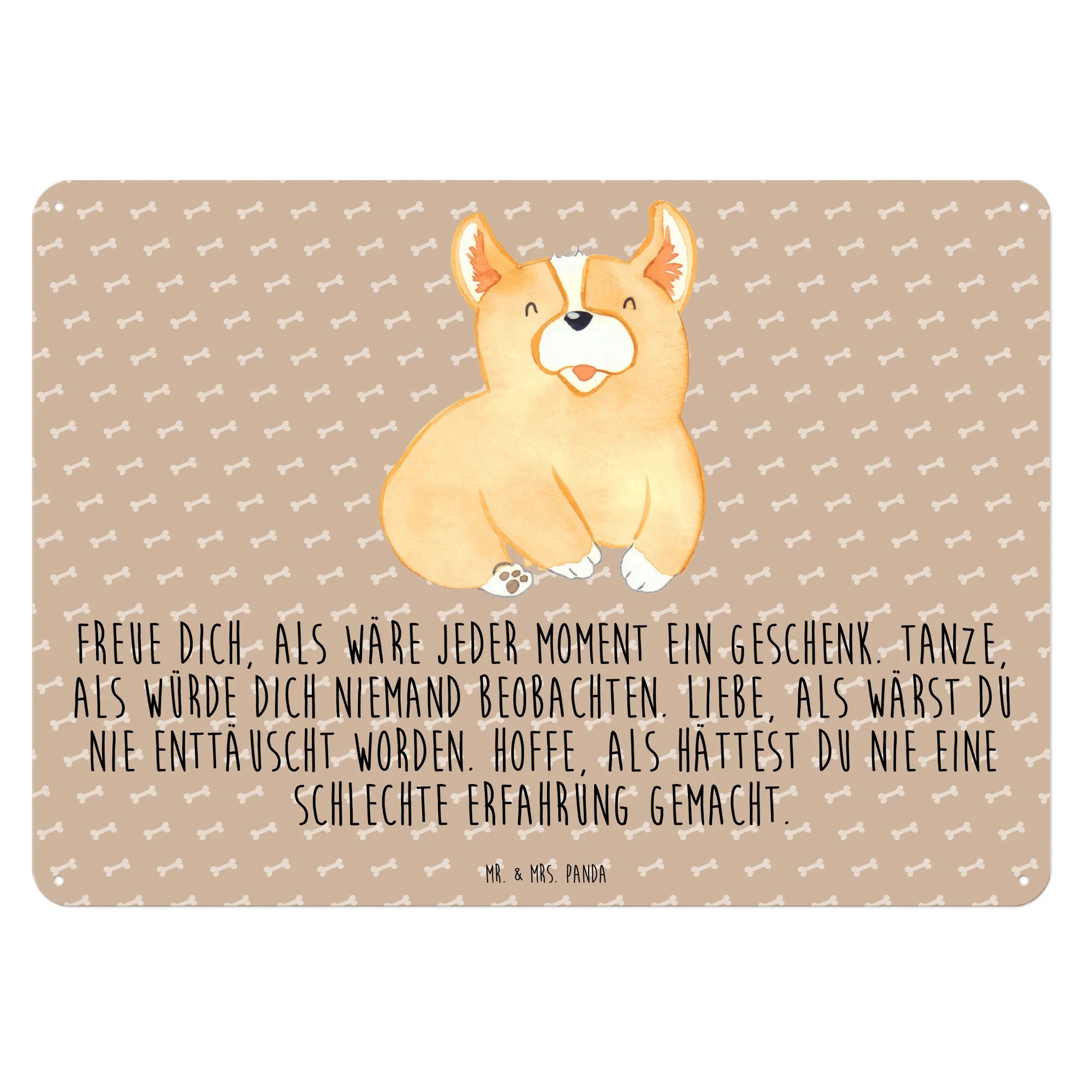 Dieses Blechschild ist ein Wohlfühlobjekt, das sowohl als Wanddekoration als auch als persönliches Türschild verwendet werden kann. Bring Freude und positive Vibes in deine Umgebung mit diesem wundervollen Corgi-Schild aus der Hunde Kollektion von Mr. & Mrs. Panda.