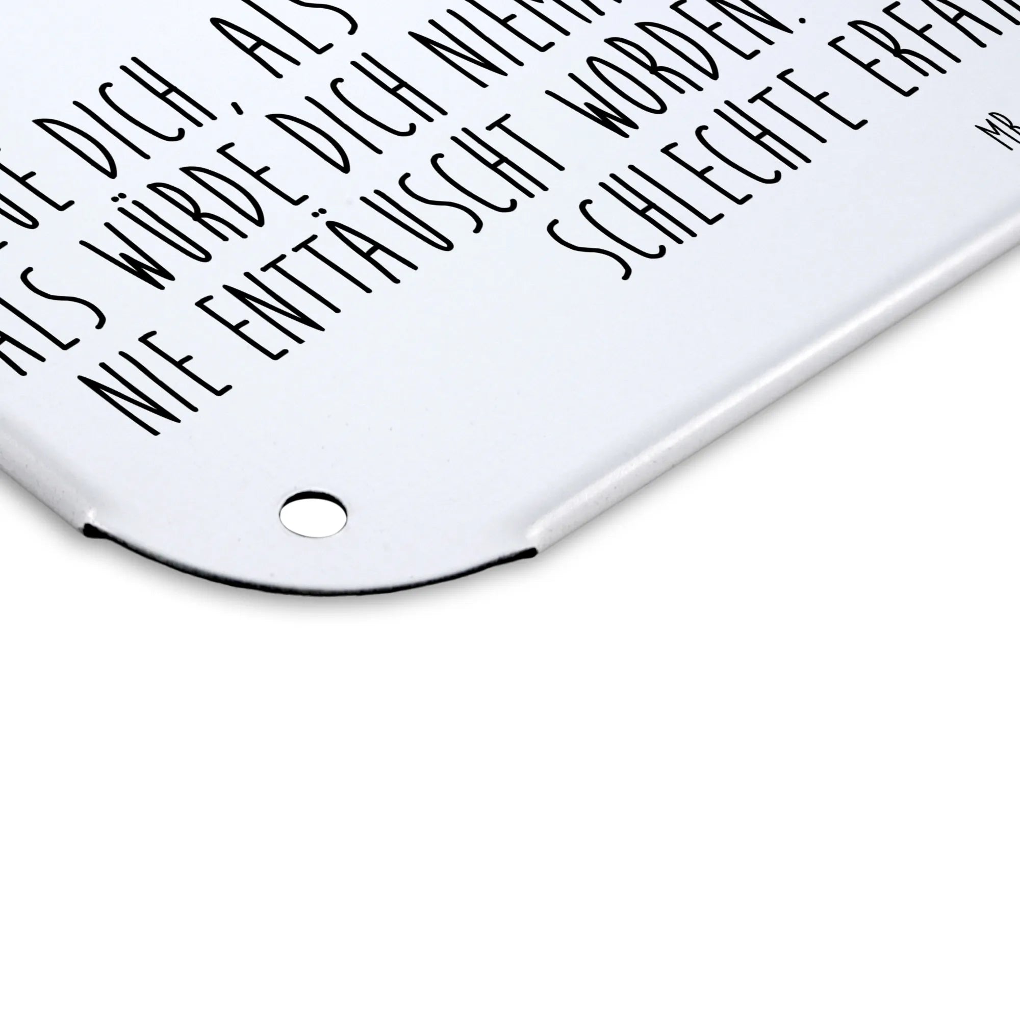 Entdecke das wunderschöne Blechschild von Mr. & Mrs. Panda! Mit seinen edlen Maßen von 146 mm x 148 mm x 210 mm ist es nicht nur ein Blickfang, sondern auch eine stilvolle Bereicherung für dein Zuhause. Der aus hochwertigem Stahlblech gefertigte Schild ist perfekt für die Wand oder die Tür geeignet. Die edel und langlebig bedruckte Oberfläche sorgt dafür, dass die süßen Motive und Sprüche lange strahlend schön bleiben. Die seidenmatte Oberfläche verleiht dem Schild einen besonderen Touch. Ob als Dekoration oder Geschenkidee - dieses Blechschild ist ein echtes Highlight! Mit 4 Bohrungen ausgestattet, lässt es sich zudem optimal montieren. Ideal für den Innenbereich, lässt es sich leicht mit einem feuchten Tuch abwischen. Die abgerundeten Ecken und umgefalzten Kanten verhindern Verletzungen und machen das Schild sicher und ansprechend. Zudem ist das Schild in verschiedenen Größen erhältlich – finde die perfekte Variante für dich!