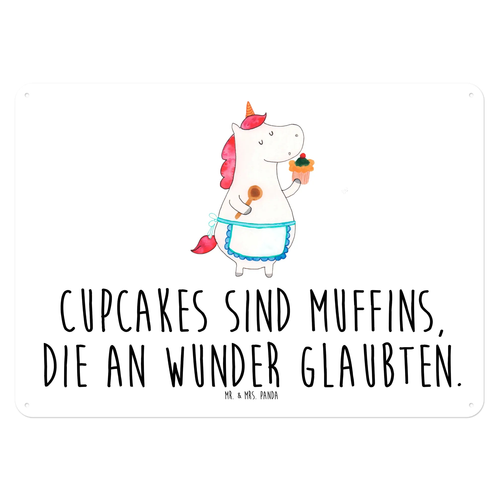 Das Blechschild Einhorn Küchenfee von Mr. & Mrs. Panda ist das perfekte Geschenk für alle Hobbybäcker und Einhorn-Fans! Dieses zauberhafte Metallschild verzaubert mit seinem handgezeichneten Motiv eines süßen Einhorns, das eine Kochmütze trägt und mit einer Kochschürze perfekt in jede bunte Küche passt. Der Spruch "Cupcakes sind Muffins, die an Wunder glaubten" macht das Schild nicht nur zu einem tollen Blickfang, sondern auch zur idealen Motivationsquelle für all jene, die gerne backen. Ob für deinen eigenen Wohnraum oder als Geschenkidee für Freunde und Familie – dieses Wandschild bringt Freude und ein Lächeln in jedes Zuhause!
