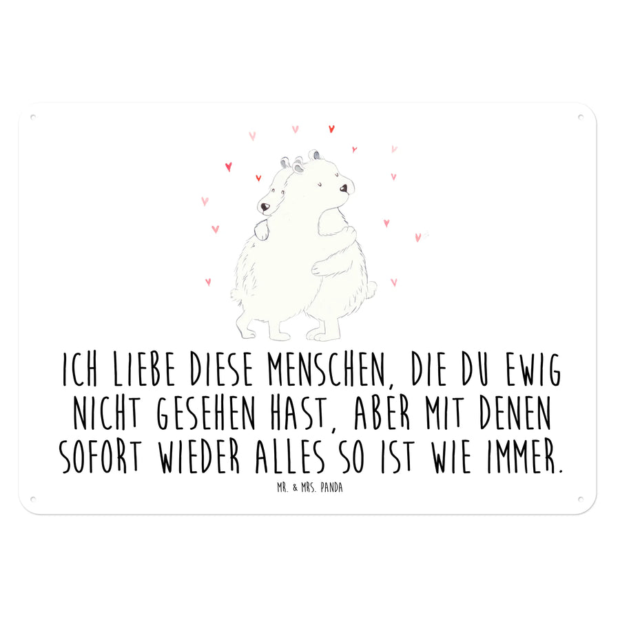 Verschenke Freude, Liebe und eine Herzensbotschaft – mit dem Spruch "Ich liebe diese Menschen, die du ewig nicht gesehen hast, aber mit denen sofort wieder alles so ist wie immer." wird jeder Beschenkte zum Strahlen gebracht. Perfekt für Geburtstage, Freundschaftstage oder einfach nur so, um jemandem zu zeigen, wie wichtig er dir ist. Das "Eisbär Umarmen" Blechschild ist ein Muss für jeden Tierliebe und Dekorations-enthusiasten.