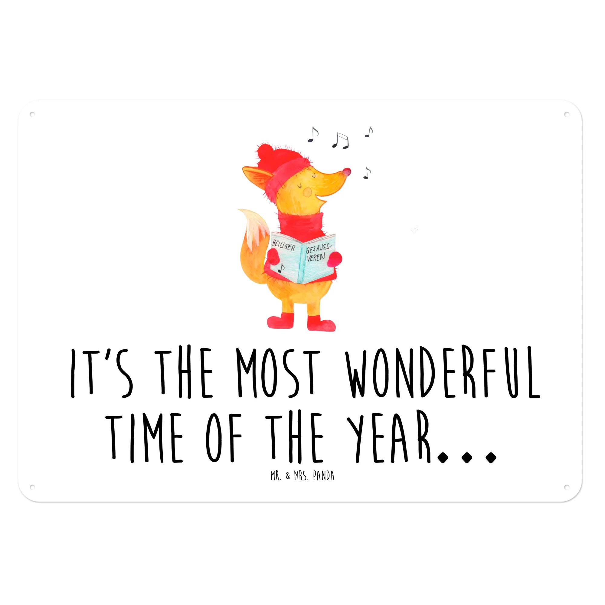 Entdecke das wunderschöne Blechschild "Fuchs Sänger" aus der Winter Kollektion von Mr. & Mrs. Panda! Dieses edle und liebevoll gestaltete Metallschild zaubert jedem ein Lächeln ins Gesicht und ist das perfekte Geschenk für die winterliche Zeit.