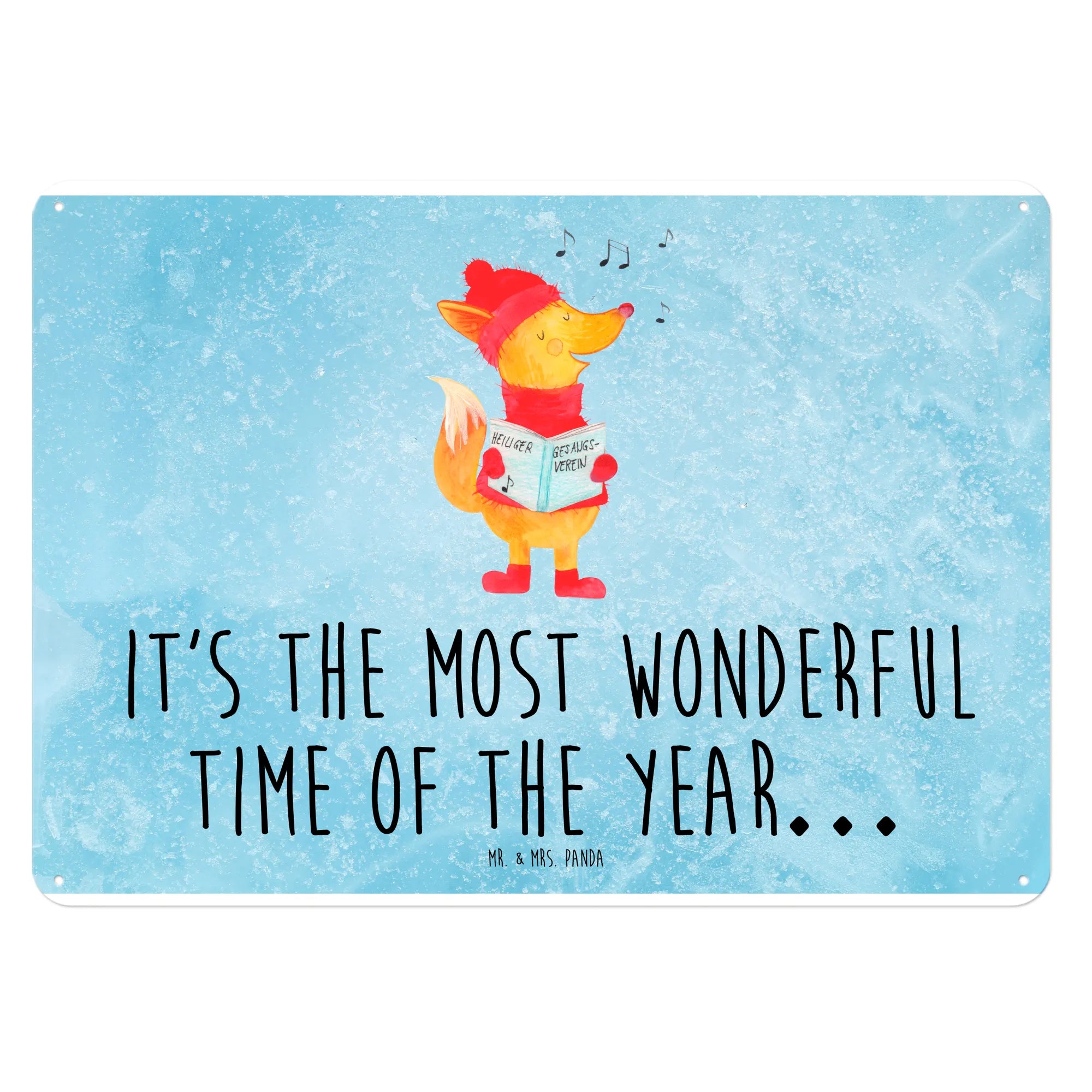 Das perfekte Geschenk für die Winterzeit: unser edles Blechschild "Fuchs Sänger" aus der Winter Kollektion von Mr. & Mrs. Panda! Mit seinem fröhlichen Fuchs, der in ein Liederbuch schaut und Weihnachtslieder singt, ist dieses Schild ein absolutes Highlight für jede Wand oder Tür.