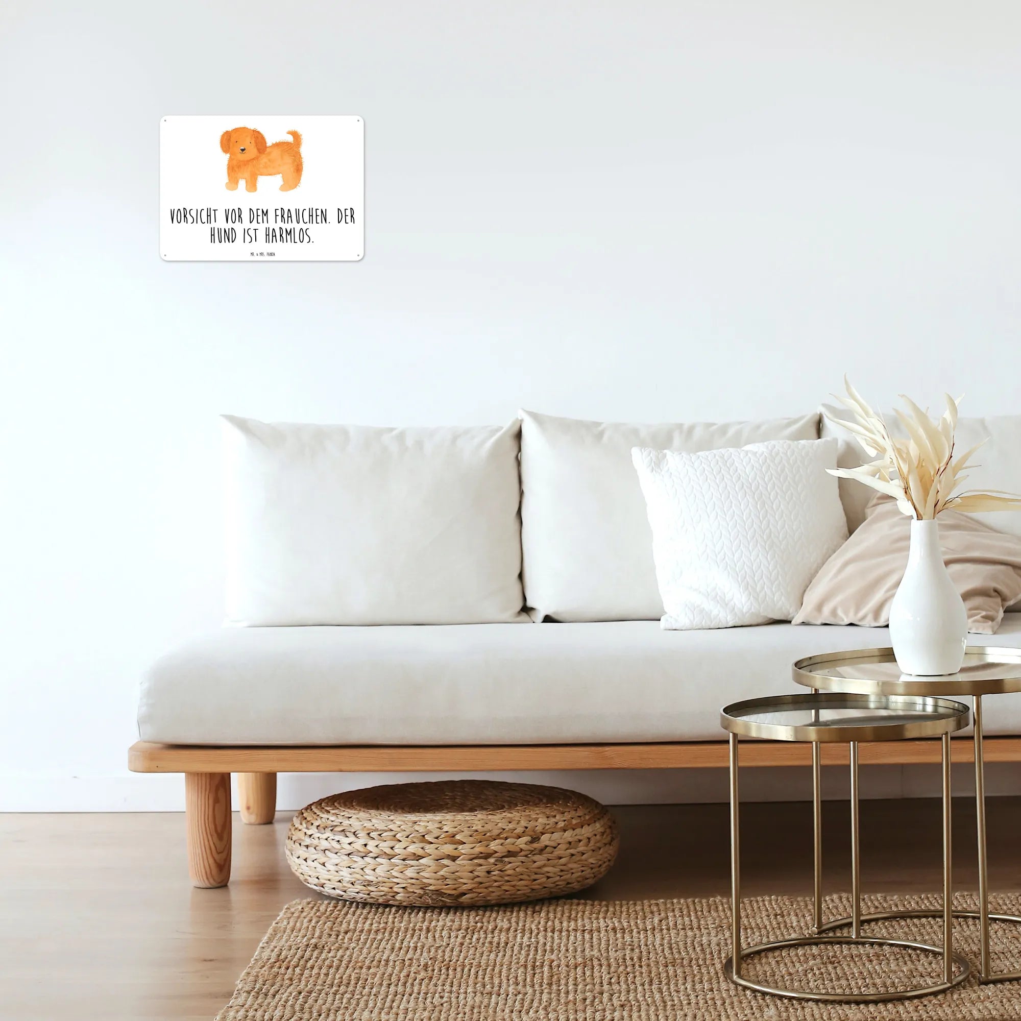 Das Blechschild "Vorsicht vor dem Frauchen. Der Hund ist harmlos." von Mr. & Mrs. Panda ist ein absolutes Must-Have für jeden Hundeliebhaber! Mit seinem charmanten, flauschigen Hundemotiv und der liebevollen Gestaltung bringt dieses Metallschild nicht nur ein Lächeln auf die Lippen, sondern verleiht auch jedem Raum eine persönliche Note. Überrasche deine Freunde oder Familie, die Hundebesitzer sind, mit diesem tollen Geschenk, das perfekt zur Hundeliebe passt! Egal, ob zum Geburtstag, zu Weihnachten oder einfach als kleine Aufmerksamkeit zwischendurch – dieses dekorative Wandschild wird immer gut ankommen.