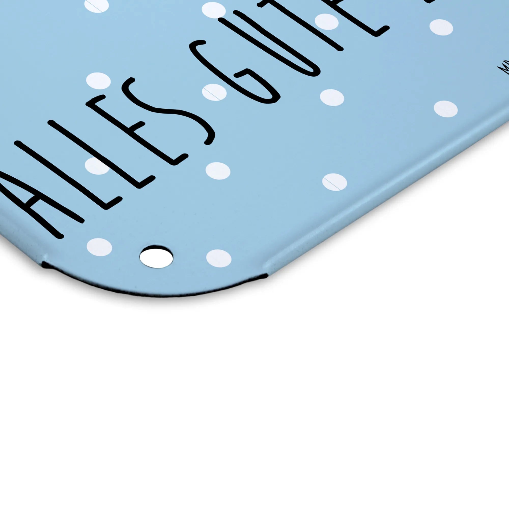 Dieses Blechschild ist ideal für den Innenbereich geeignet und verleiht jedem Raum eine persönliche Note. Die edle seidenmatte Oberfläche sowie die abgerundeten Ecken und umgefalzten Kanten verleihen dem Schild ein hochwertiges Aussehen und machen es zu einem echten Hingucker. Mit 4 Bohrungen zur optimalen Befestigung ist die Anbringung kinderleicht, egal ob du es an die Wand hängt oder an die Tür anbringst.