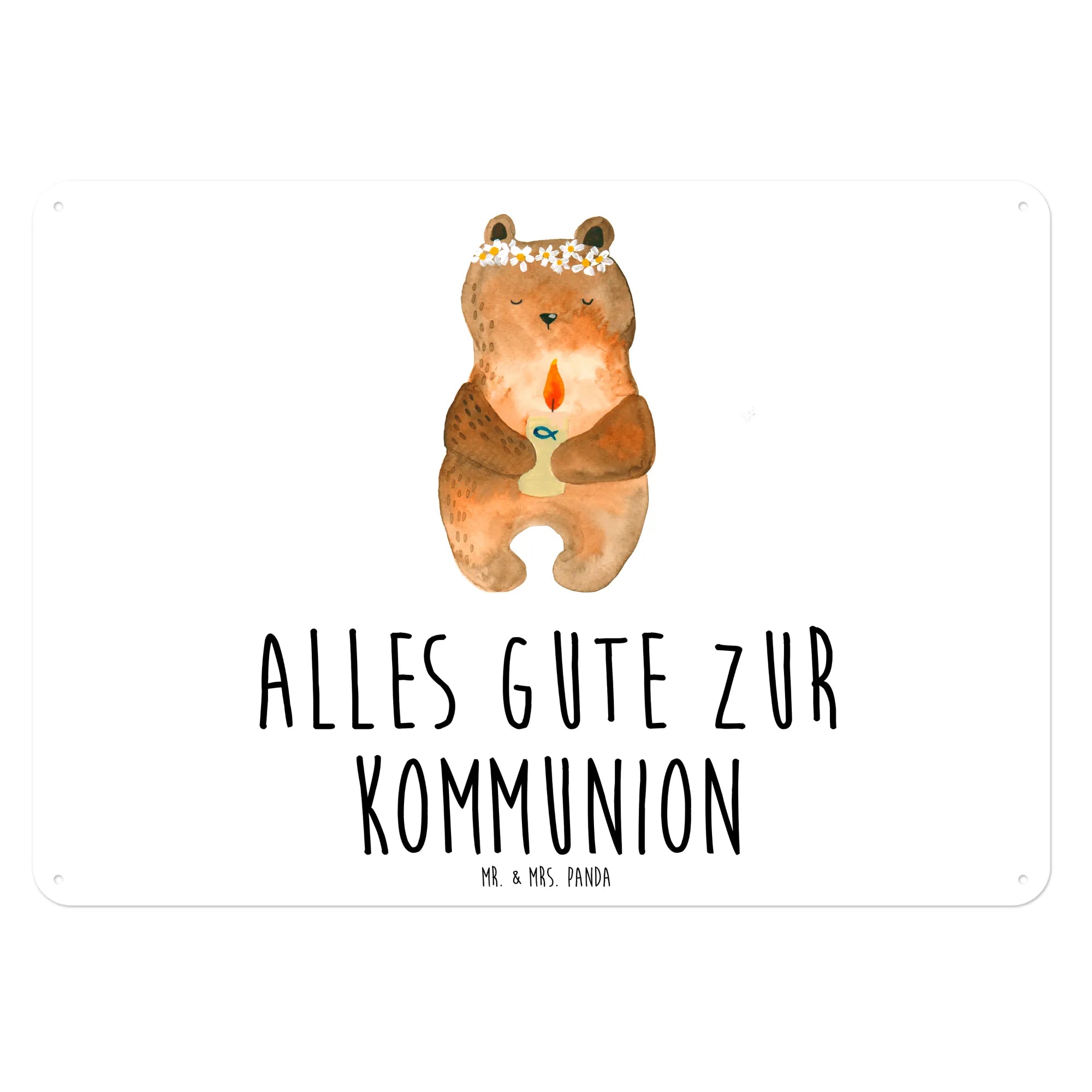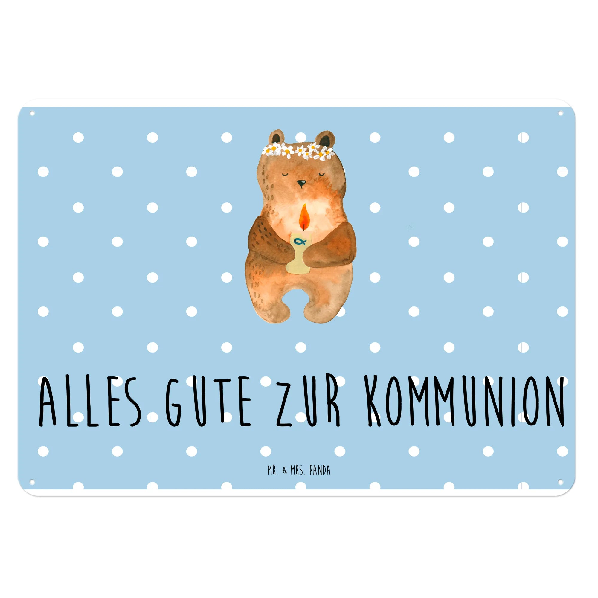 Das wunderschöne Blechschild "Kommunion-Bär" von Mr. & Mrs. Panda ist das perfekte Geschenk zur Kommunion. Dieses edle und liebevoll gestaltete Schild wird jeden beschenken, der diesen besonderen Tag feiert.