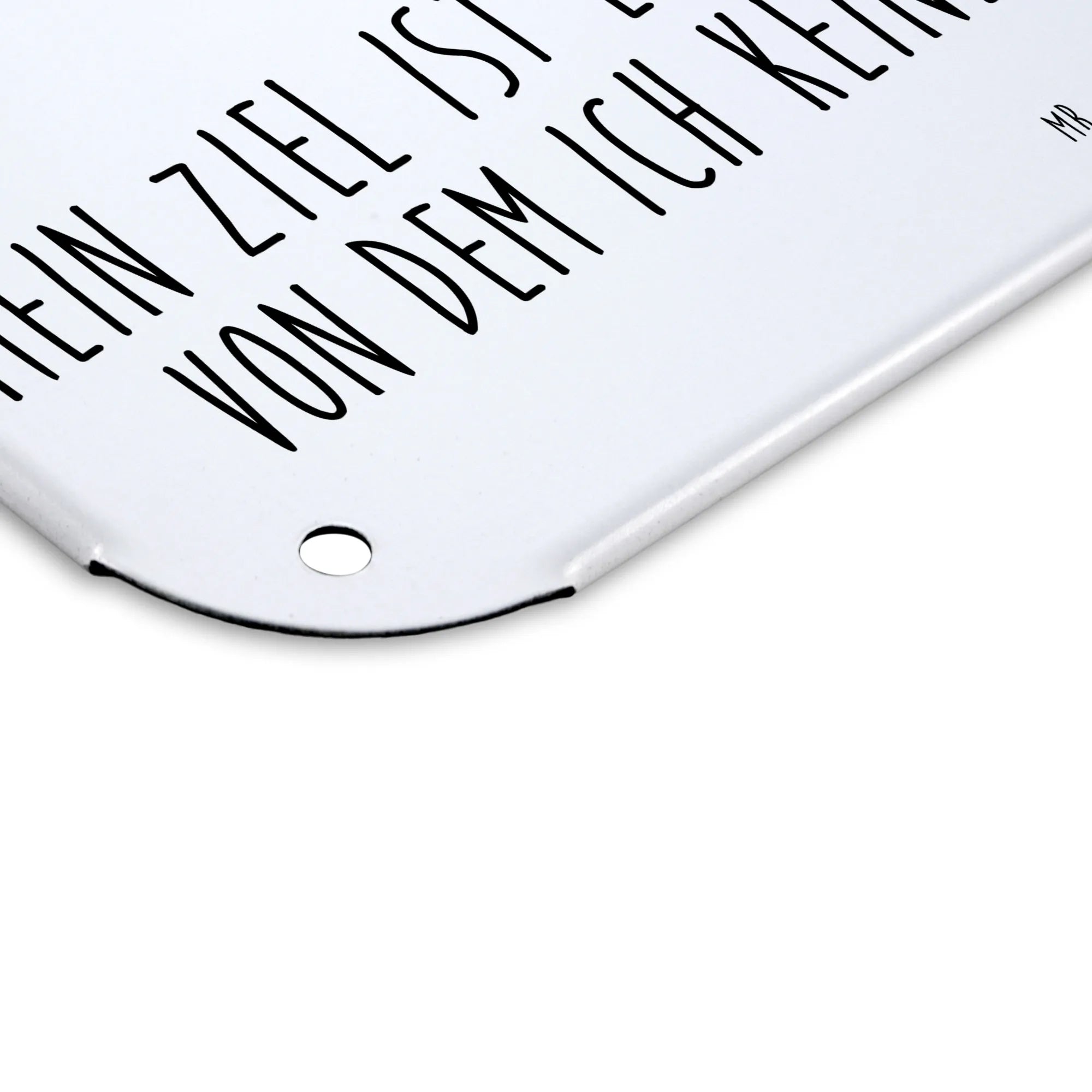 Das edle Metall-Schild hat eine seidenmatte Oberfläche und überzeugt durch eine robuste Verarbeitung aus hochwertigem Stahlblech. Es ist ideal für die Wanddeko oder als Türschild geeignet und macht sich in jedem Raum fantastisch. Mach deinen Büroalltag bunter und motiviere dich mit dem Spruch: "Mein Ziel ist es, ein Leben aufzubauen, von dem ich keinen Urlaub brauche."
