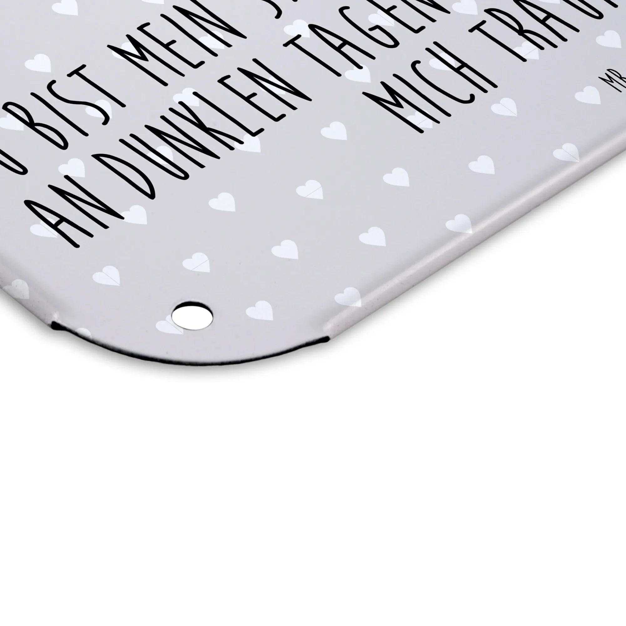 Mit dem Spruch 'Du bist mein Stern, zu dem ich aufblicke, der an dunklen Tagen für mich leuchtet und der mich träumen lässt.' wird dieses Schild zum echten Liebesbeweis. Die Kombination aus verspielter Grafik und tiefgründigem Text macht das Metallschild zu einem besonderen Dekorationsstück für die Wand oder die Tür.