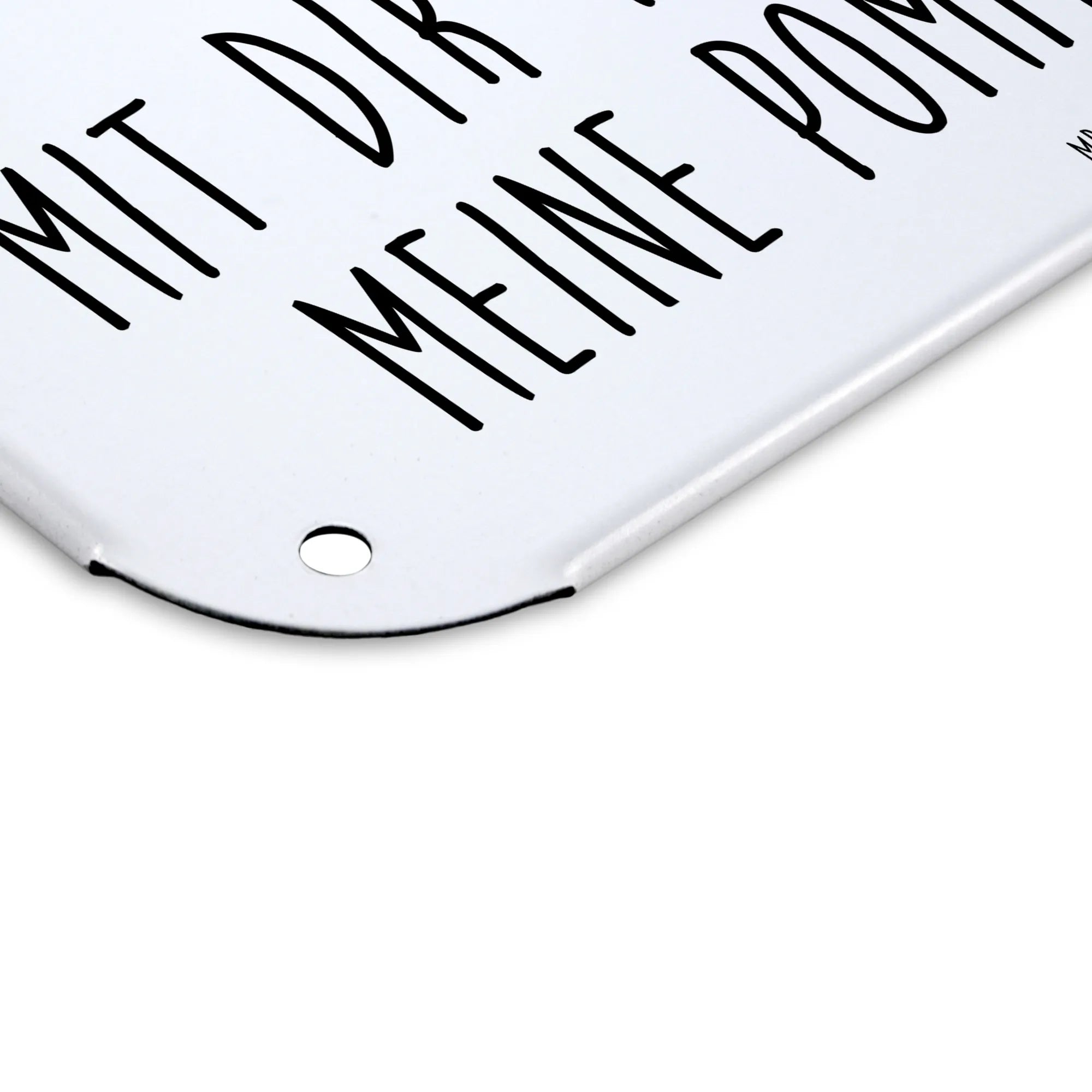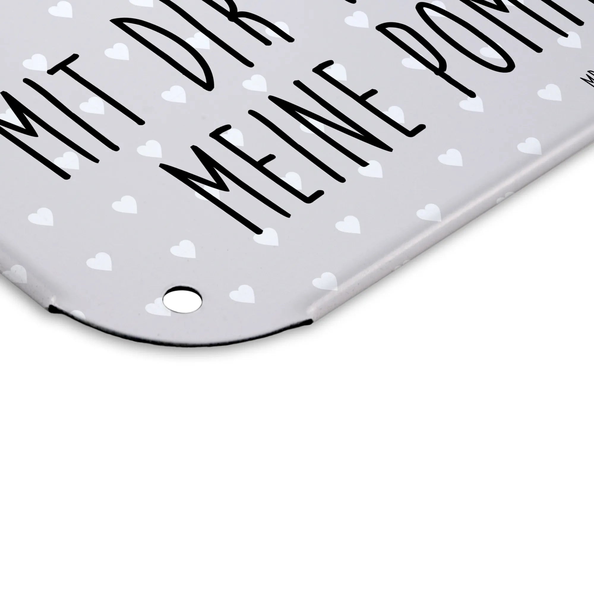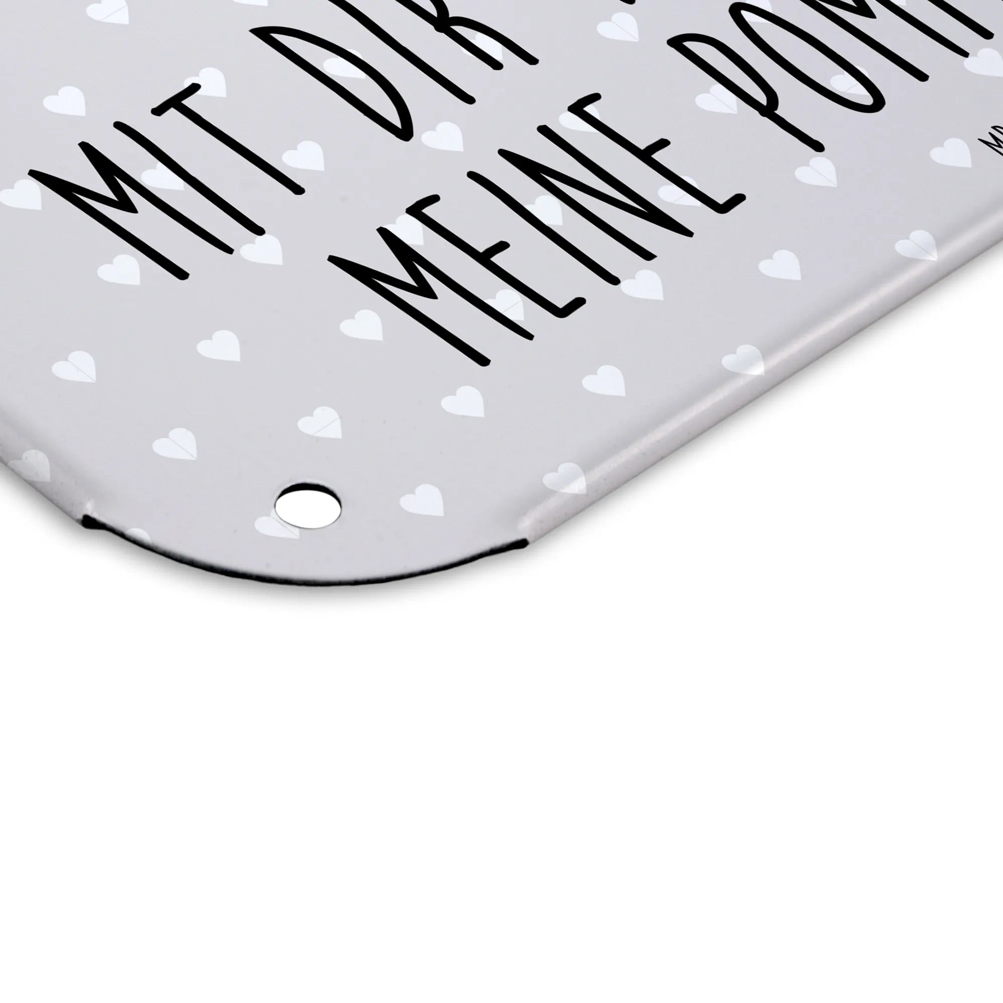 Das hochwertig bedruckte Metall-Schild hat eine edle, seidenmatte Oberfläche und die abgerundeten Ecken sorgen für Sicherheit und Eleganz. Mit den vier Bohrungen kannst du das Schild leicht an der Wand oder der Tür anbringen und so ein Stückchen Liebe verschenken.