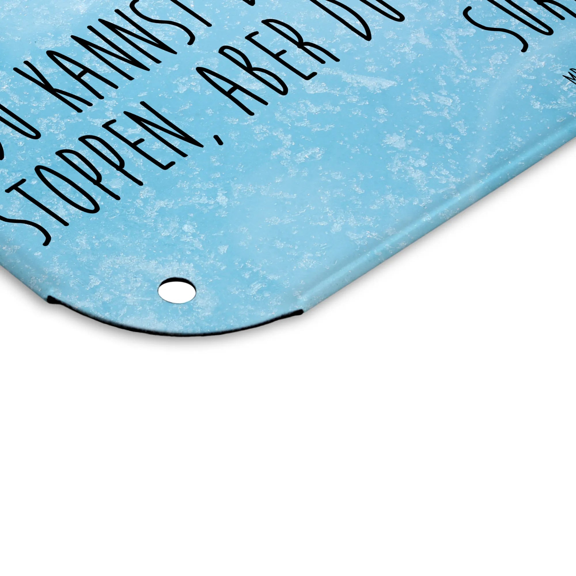 Das Blechschild hat die ideale Größe für die Wand oder die Tür und ist mit einer exquisiten seidenmatten Oberfläche versehen, die für jeden Raum eine stilvolle Dekoration bietet. Ob in der Wohnung, im Büro oder als nette Überraschung für einen geliebten Menschen - mit diesem deko Schild liegst du immer genau richtig. Die vier Bohrungen ermöglichen eine einfache und unkomplizierte Befestigung, sodass du es schnell an deinem Lieblingsplatz aufhängen kannst.