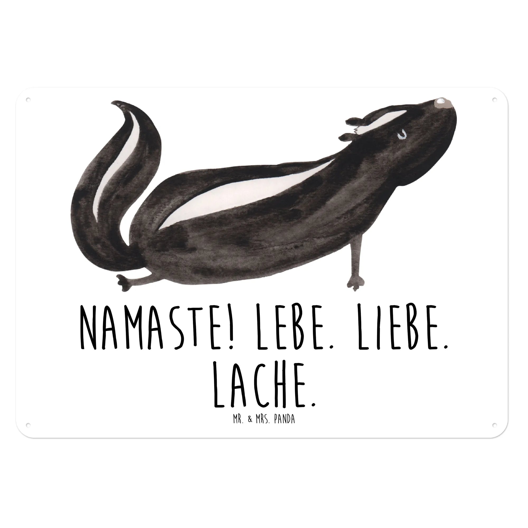 Das herrliche Stinktier Yoga Blechschild von Mr. & Mrs. Panda ist nicht nur eine bezaubernde Wanddekoration, sondern auch eine perfekte Inspirationsquelle für alle Yoga-Liebhaber! Mit dem süßen Stinktier im Aquarellstil und dem motivierenden Slogan 'Namaste! Lebe. Liebe. Lache.' bringt dieses Metallschild eine positive Energie in Dein Zuhause.