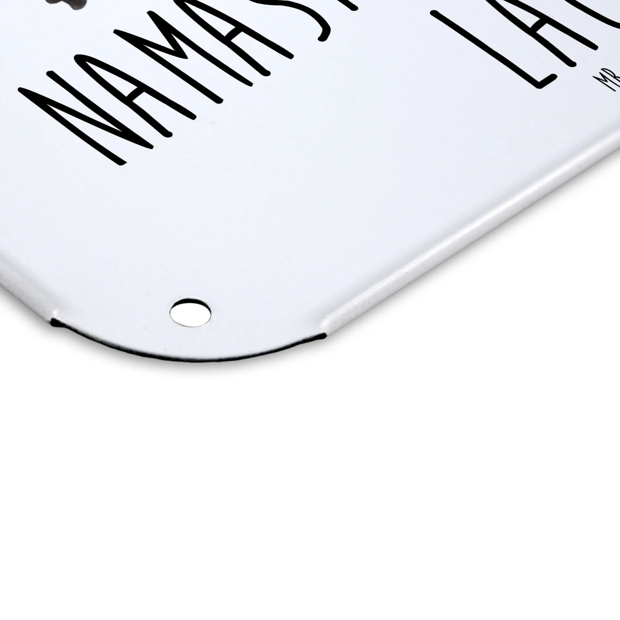 Das fröhliche Blechschild mit dem liebevollen Stinktier Yoga-Motiv von Mr. & Mrs. Panda ist das perfekte Geschenk für alle, die Freude und Inspiration in ihrem Raum schätzen. Mit dem Spruch "Namaste! Lebe. Liebe. Lache." ermutigt es dich, dich auf das Wesentliche im Leben zu konzentrieren. In einem charmanten Aquarellstil zeigt das Schild ein zufriedenes Stinktier, das Yoga praktiziert, und bringt positive Energie in jeden Raum.