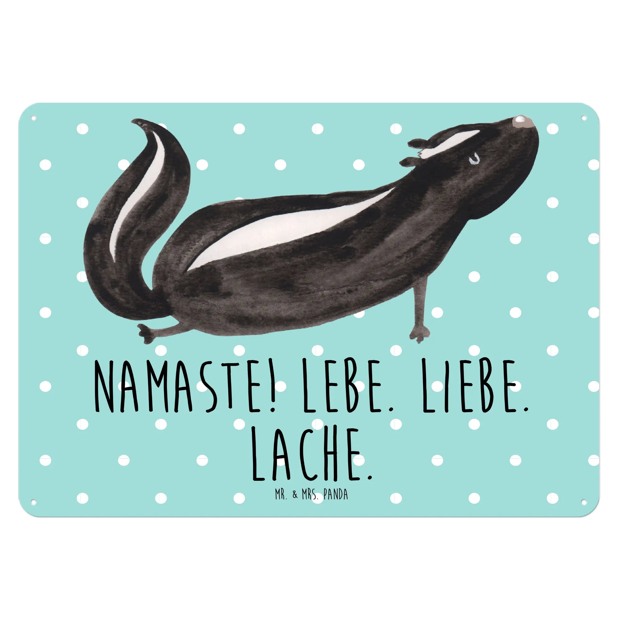 Entdecke das zauberhafte Blechschild "Stinktier Yoga" von Mr. & Mrs. Panda! Dieses einzigartige Metallschild mit dem fröhlichen Stinktier-Motiv ist nicht nur ein echter Hingucker, sondern auch eine wunderbare Erinnerung daran, sich Zeit für sich selbst zu nehmen und das Leben in vollen Zügen zu genießen. Der liebevolle Spruch "Namaste! Lebe. Liebe. Lache." in Verbindung mit dem süßen Aquarellstil des Stinktieres macht das Schild zu einer perfekten Wanddekoration für jeden Raum.