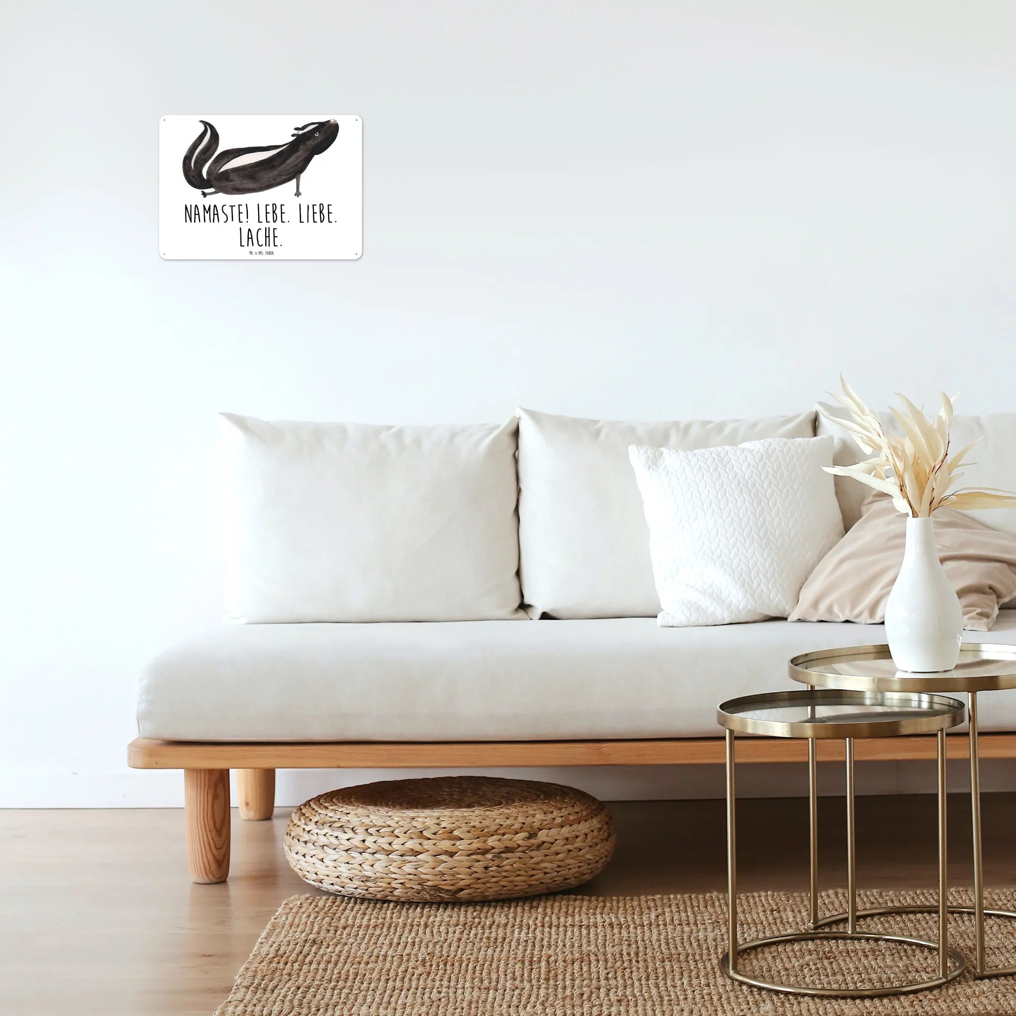 Blechschild Stinktier Yoga - DIN A3 - Weiß