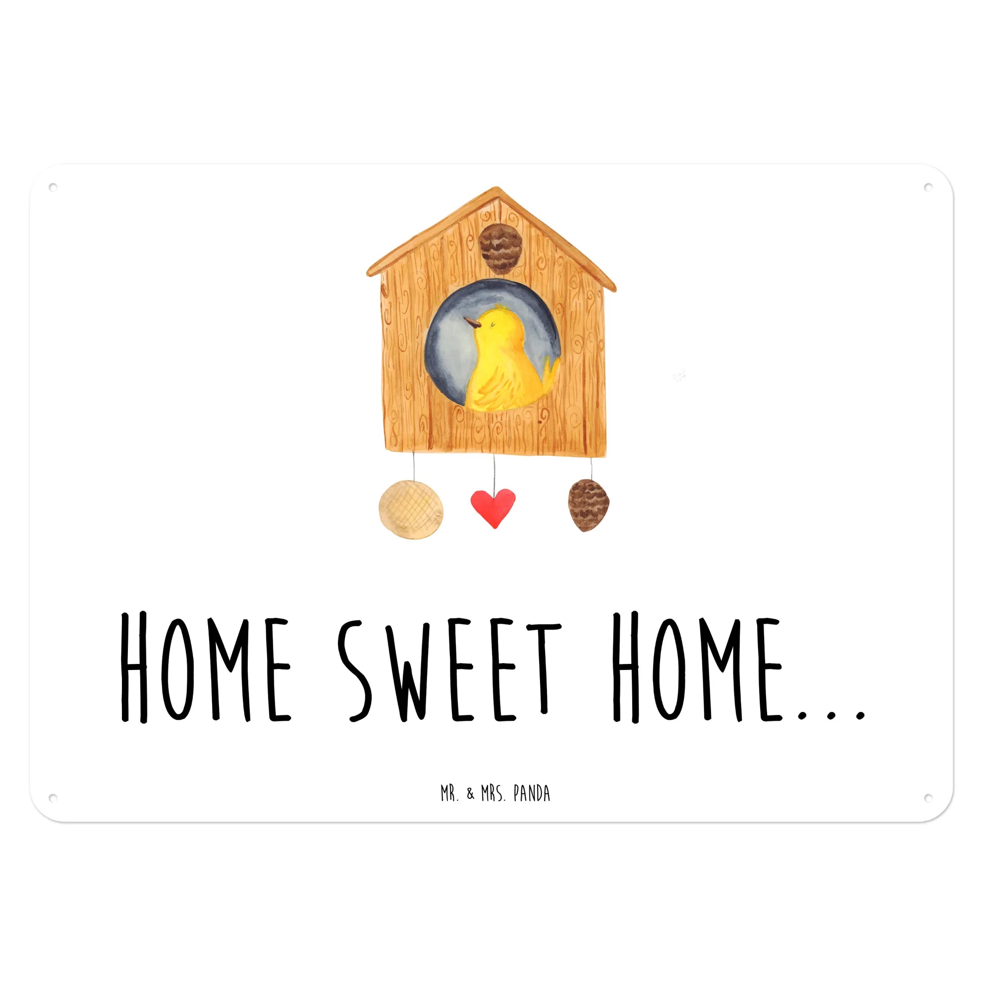 Wenn du auf der Suche nach dem perfekten Geschenk bist, dann ist das Blechschild "Vogelhaus sweet Home" von Mr. & Mrs. Panda genau das Richtige für dich! Dieses edle Metallschild verbreitet sofort gute Laune und verleiht jedem Raum eine besondere Atmosphäre.