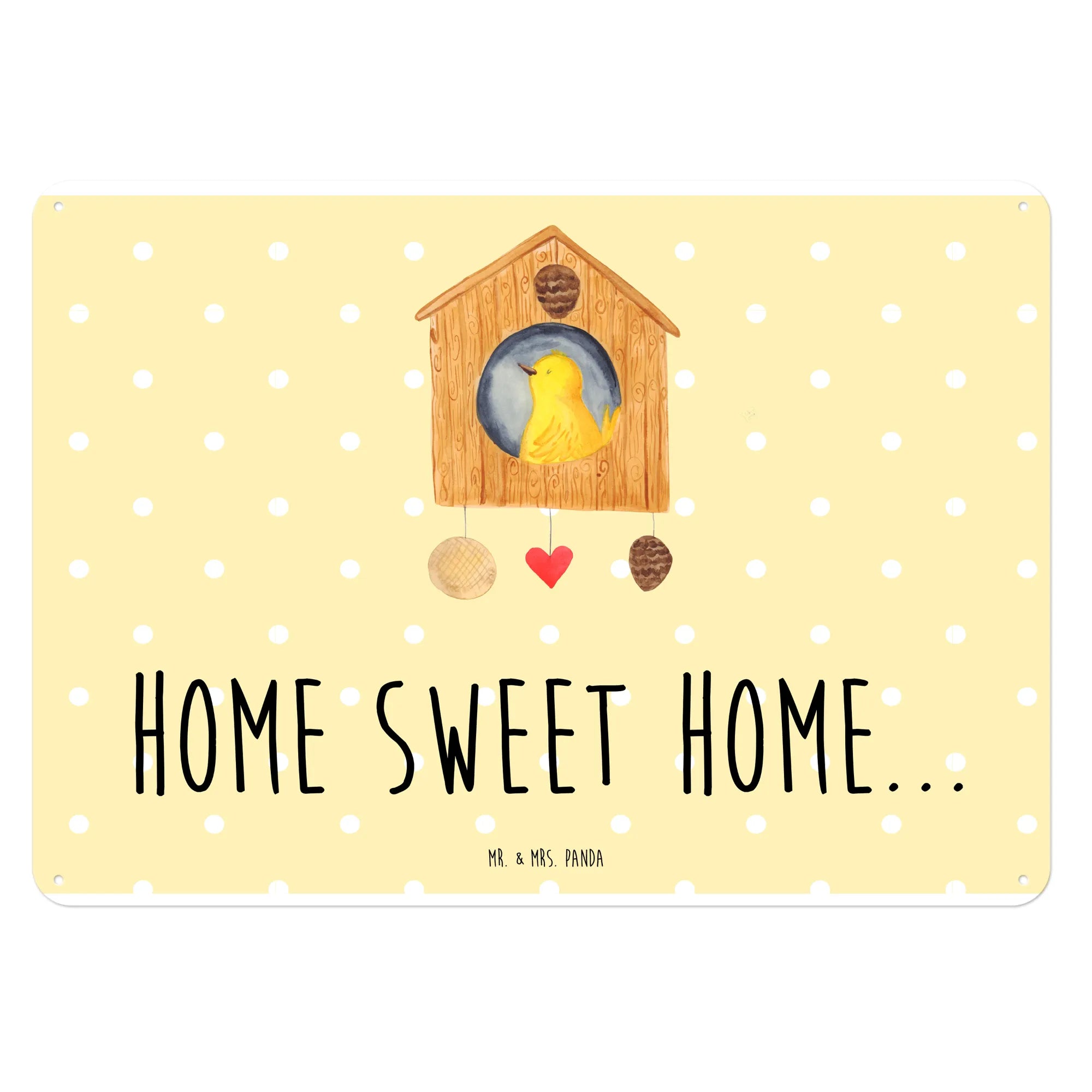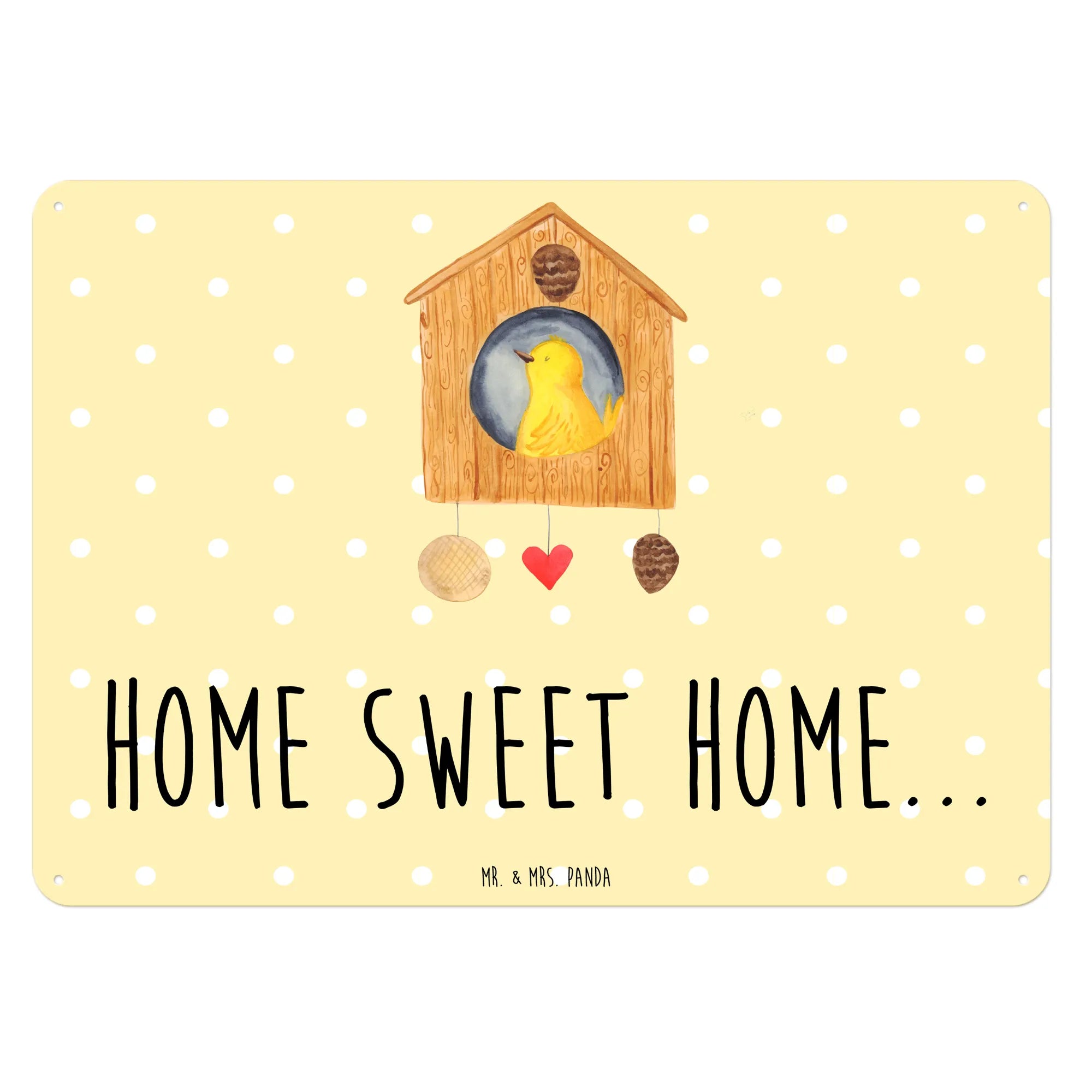 Das wunderschöne Blechschild "Vogelhaus sweet Home" von Mr. & Mrs. Panda ist die perfekte Dekoration für dein Zuhause! 🌼 Mit seinem liebevollen Motiv zieht es garantiert alle Blicke auf sich. Der niedliche gelbe Vogel, der zufrieden in seinem Vogelhaus sitzt, symbolisiert Geborgenheit und Glück. Immer wenn du nach Hause kommst, wirst du von diesem charmanten Schild mit dem Spruch "Home sweet home..." begrüßt.
