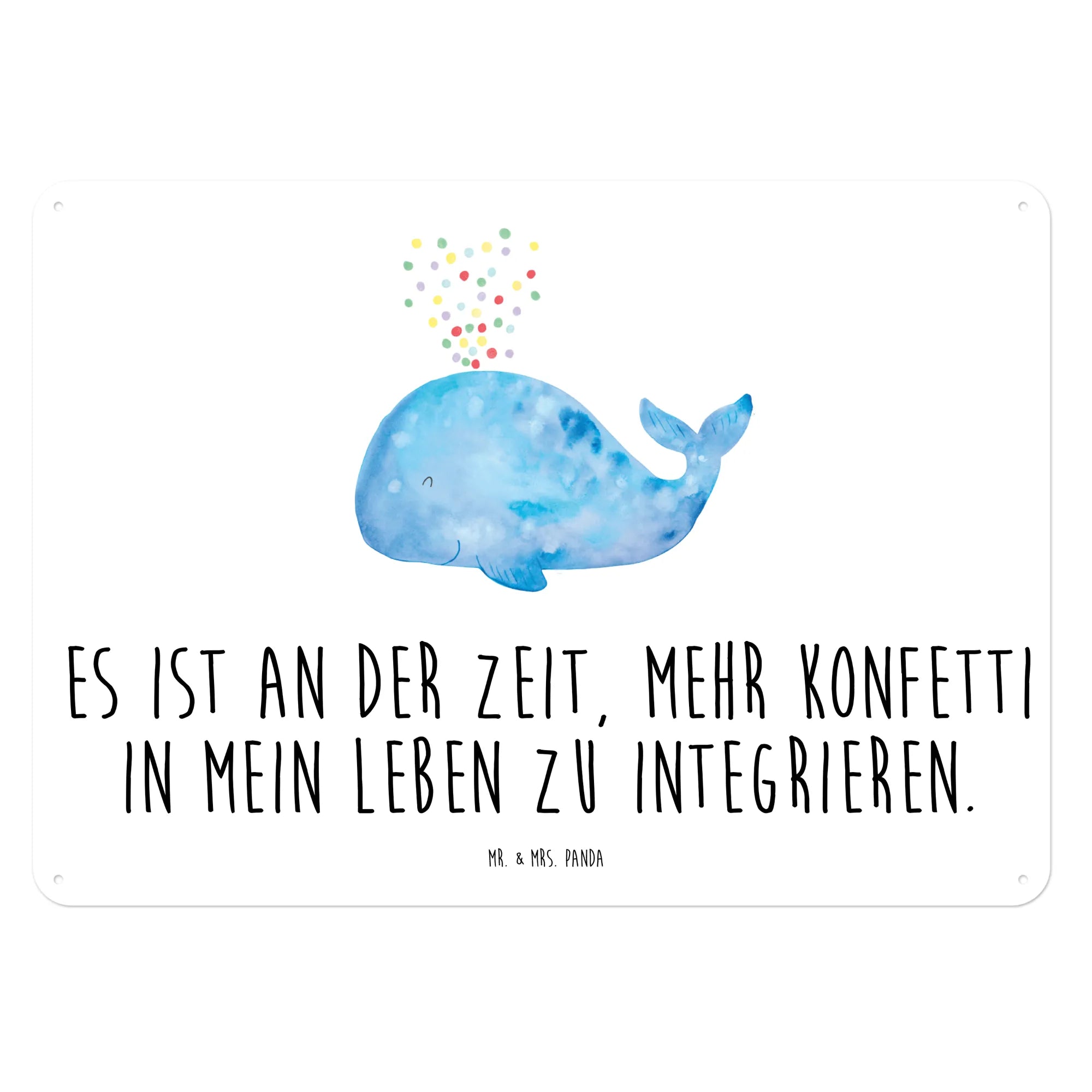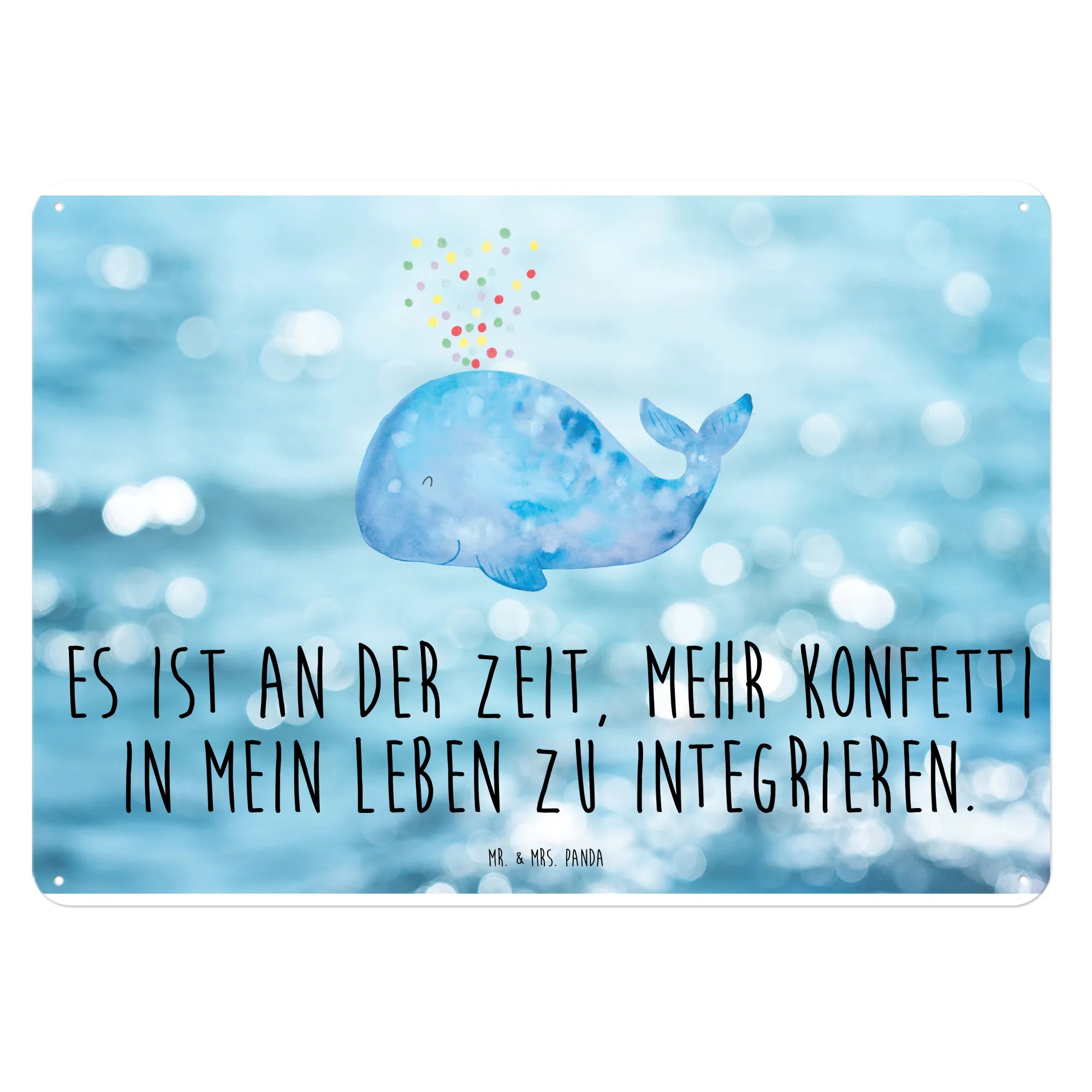 Entdecke unser bezauberndes Blechschild mit dem Motiv "Wal Konfetti" aus der besonderen Kollektion der Meerestiere von Mr. & Mrs. Panda. Dieses edle und langlebig bedruckte Schild ist mehr als nur eine Dekoration; es ist ein Stück Freude und Motivation für dein Zuhause.