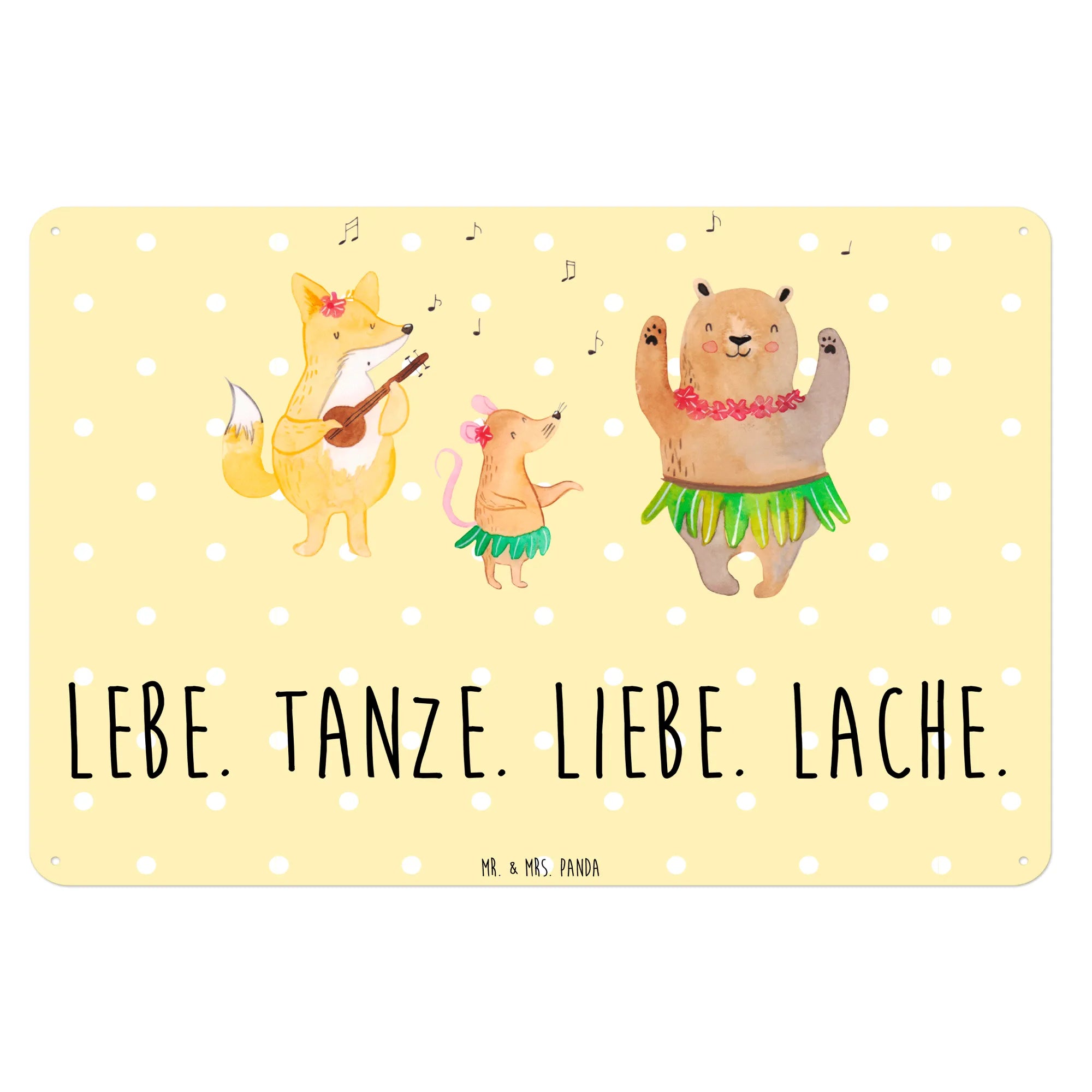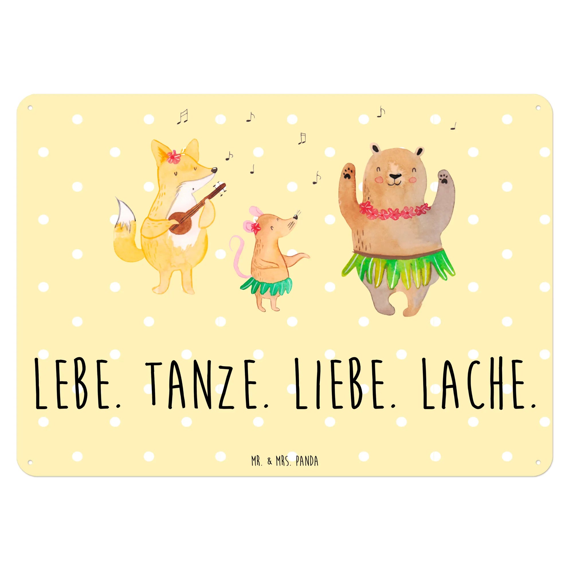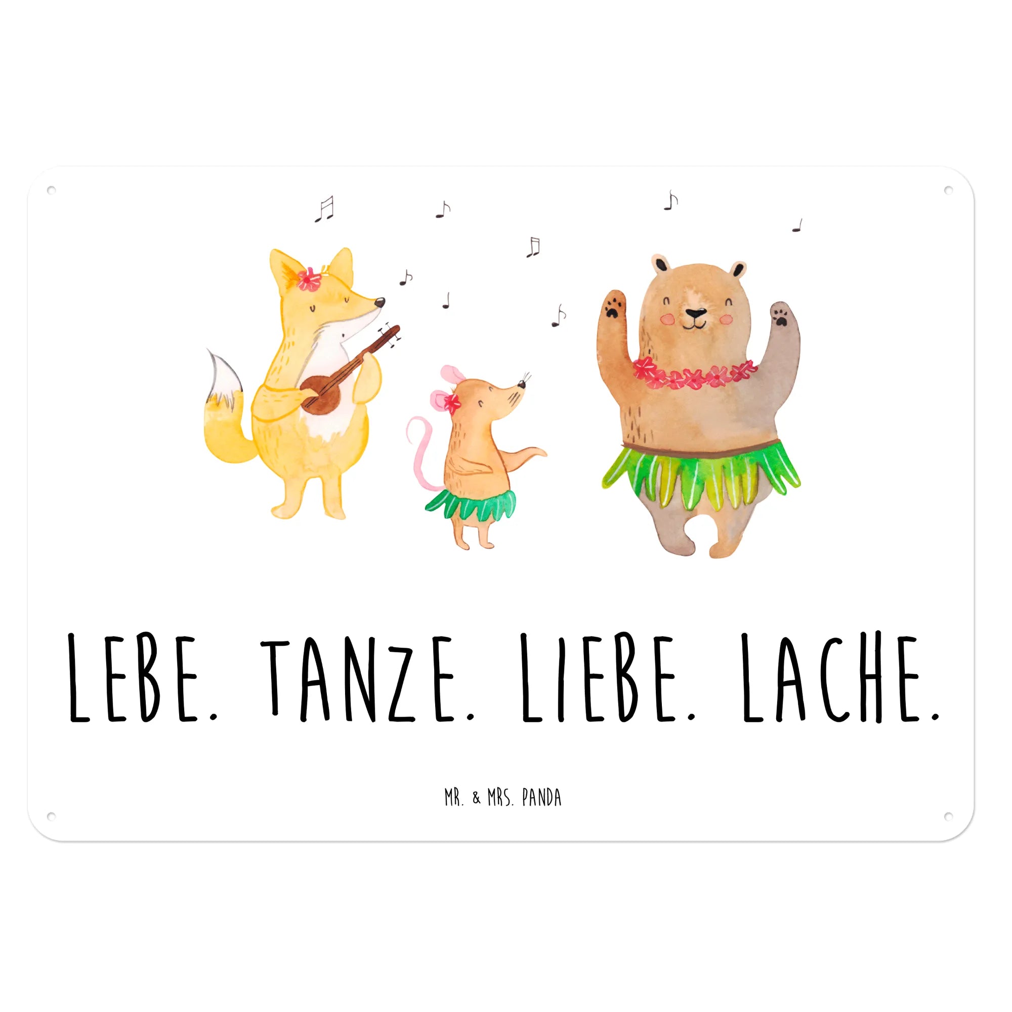 Entdecke das bezaubernde Blechschild "Waldtiere Aloha" aus der Collection 'Small World' von Mr. & Mrs. Panda! Dieses einzigartige Metallschild bringt Dir die fröhliche Stimmung von tropischen Urlauben direkt nach Hause. Mit einem entzückenden Motiv von tanzenden Waldbewohnern in ihren Hula-Röcken versetzt es Dich sofort in Urlaubslaune! Die Kunstwerke sind in lebhaften Farben gestaltet und strahlen gute Laune aus.
