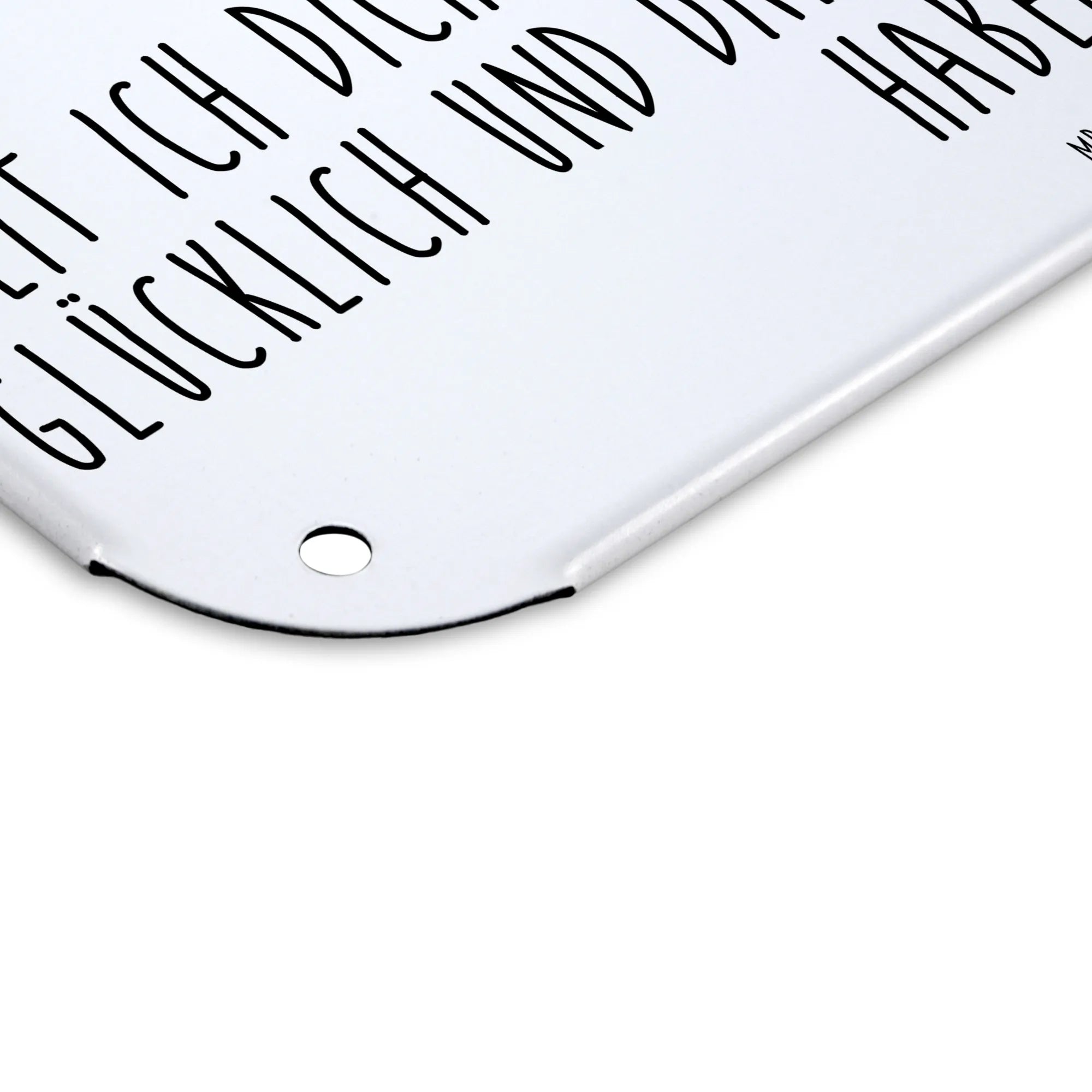 Mit dem Spruch: "Seit ich dich kenne bin ich einfach nur glücklich und dankbar für das, was wir haben...." wird jedes Mal, wenn ihr euch an diesem Schild erfreut, ein wenig Liebe und Dankbarkeit in euer Zuhause getragen. Das edle Stahlblech wird in einer seidenmatten Optik gefertigt und fühlt sich äußerst hochwertig an. Es ist ideal als Wand- oder Türschilder einsetzbar und dank der vier Bohrungen sehr einfach zu befestigen.