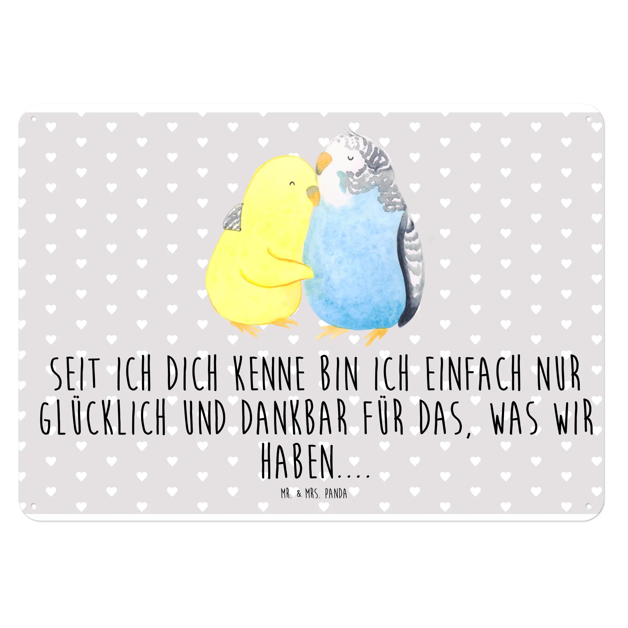 Entdecke das bezaubernde Blechschild "Wellensittich Liebe" von Mr. & Mrs. Panda! Dieses wunderbare Metallschild ist mehr als nur eine Dekoration; es ist eine Liebeserklärung.