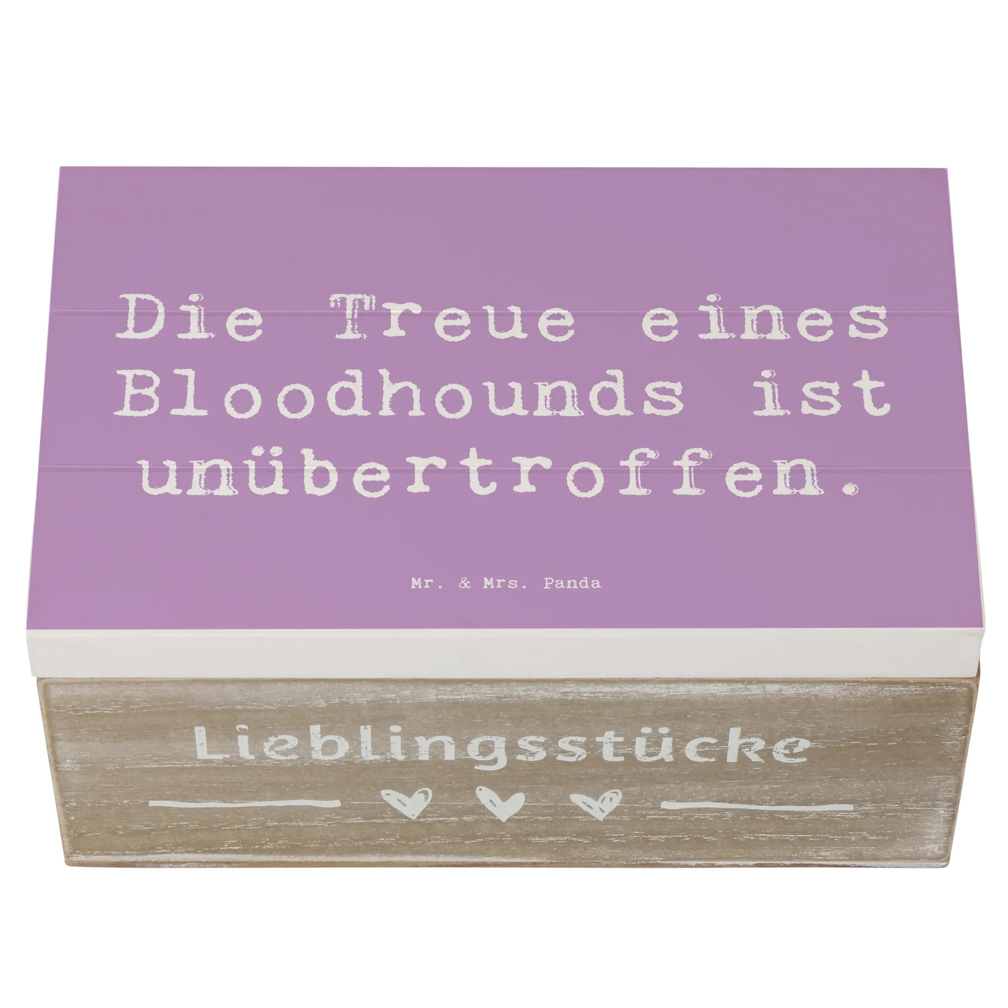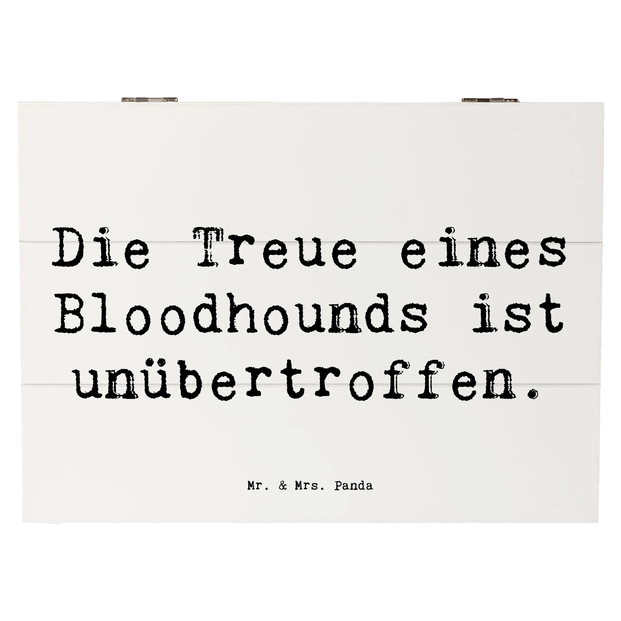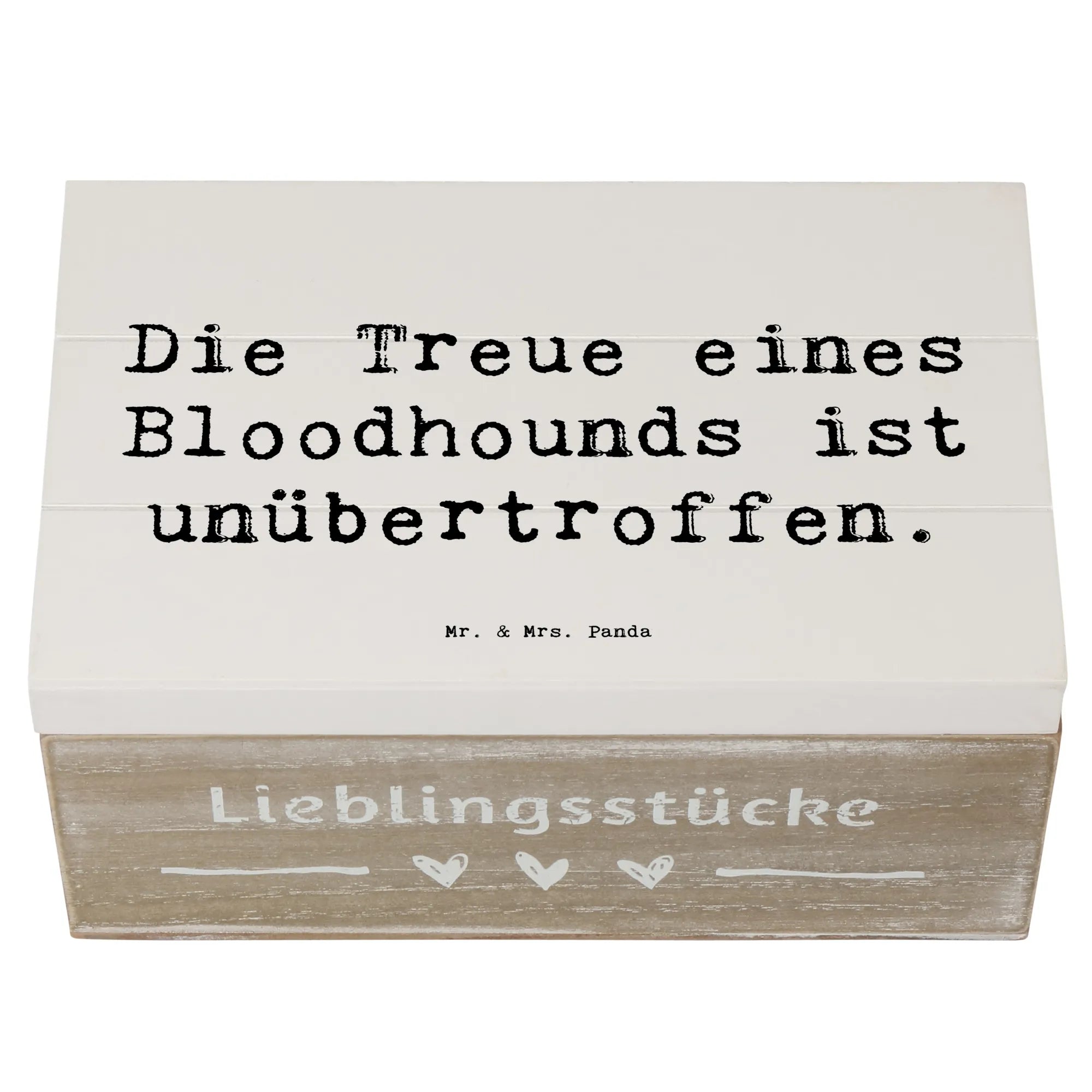 Die wunderschöne Holzkiste von Mr. & Mrs. Panda ist das perfekte Geschenk für alle Hundefreunde, vor allem für Liebhaber der Hunderasse Bloodhound. Mit ihrem charmanten Design und dem Spruch "Die Treue eines Bloodhounds ist unübertroffen" wird diese Kiste zu einem hoch geschätzten Erinnerungsstück.