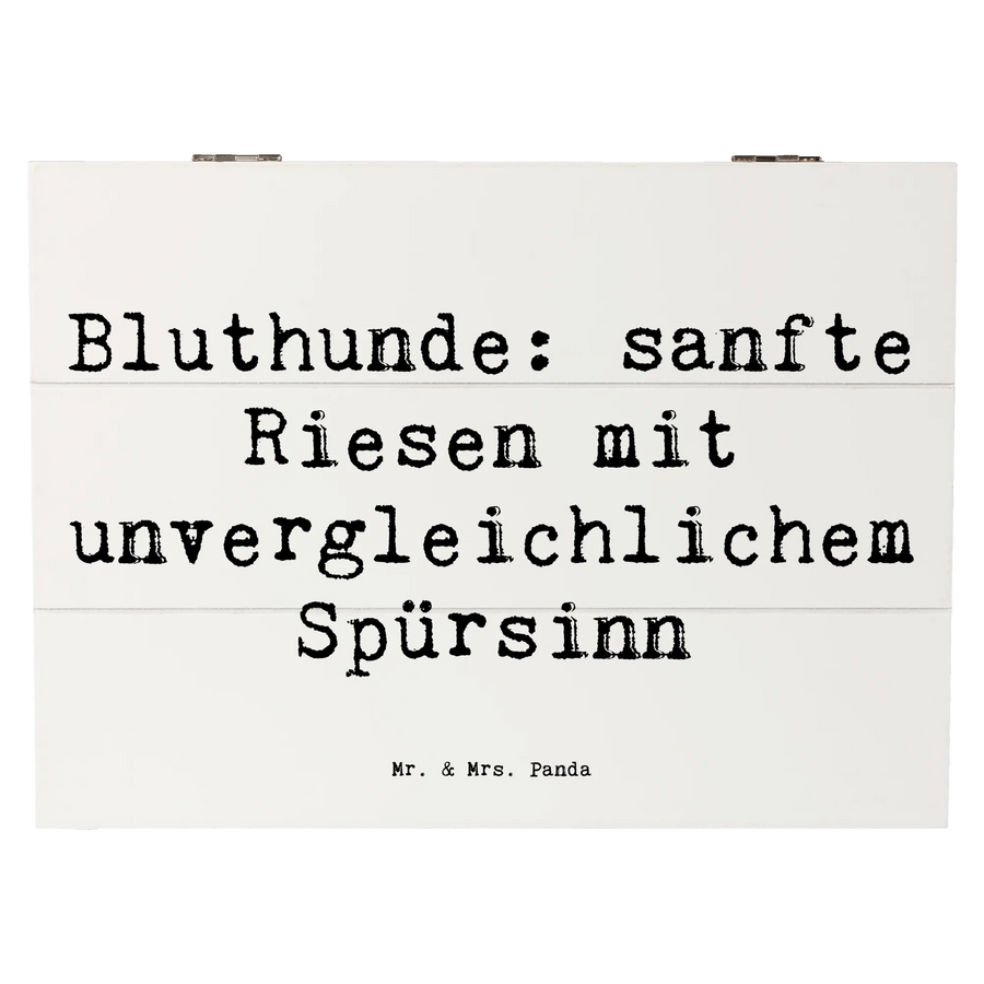 Die wunderschöne Holzkiste mit dem Motiv "Bluthunde: sanfte Riesen mit unvergleichlichem Spürsinn" von Mr. & Mrs. Panda ist das perfekte Geschenk für Hundefans und Liebhaber der Hunderasse Bloodhound. Mit ihren sanften Riesen, die eine außergewöhnliche Nase haben, fängt dieses Produkt die einzigartige Beziehung zwischen Mensch und Hund ein. Die Holzkiste ist nicht nur eine stilvolle Aufbewahrungsmöglichkeit für all die kostbaren Erinnerungen, sondern eignet sich auch hervorragend als dekorative Schatzkiste für die unterschiedlichsten Anlässe.