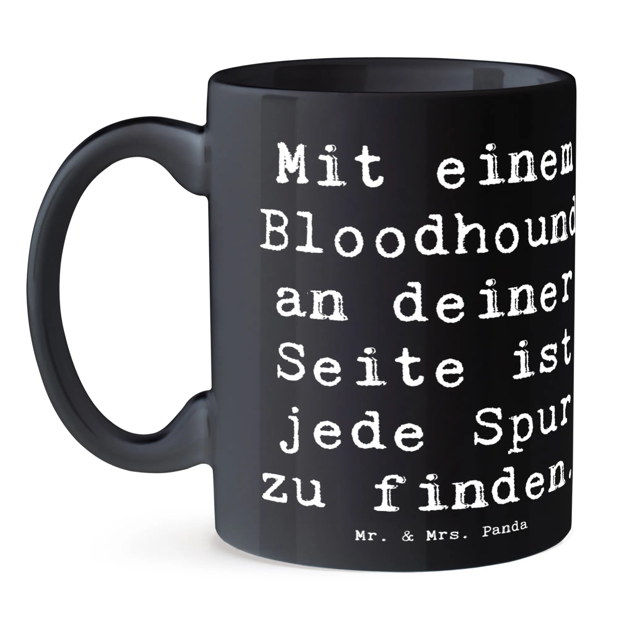 Mit einem Bloodhound an deiner Seite ist jede Spur zu finden bedeutet, dass man mit einem treuen und fähigen Begleiter, wie einem Bloodhound, jede Herausforderung meistern und jeden Hinweis finden kann. Ein Bloodhound steht für Loyalität, Ausdauer und außergewöhnliche Fähigkeiten im Aufspüren von Spuren und hilft dir, nie den Überblick zu verlieren.