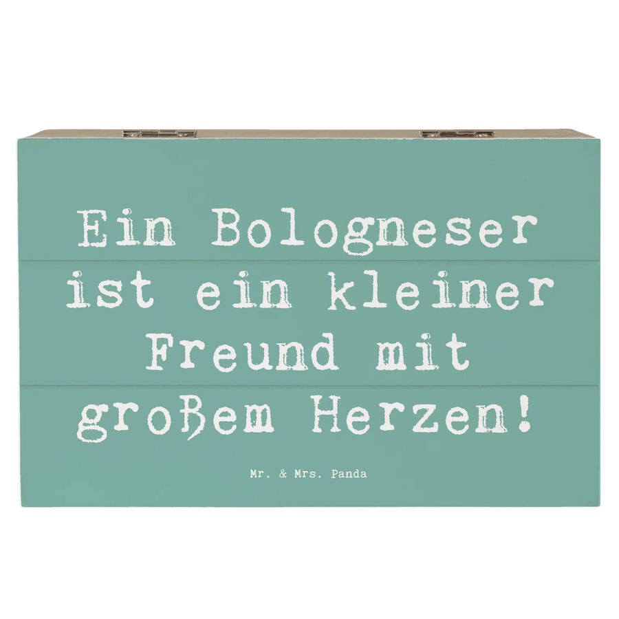 Verschenke eine Portion Liebe und Freude mit der Holzkiste von Mr. & Mrs. Panda, die durch den Spruch 'Ein Bologneser ist ein kleiner Freund mit großem Herzen!' zu einem absoluten Hingucker wird. Egal ob zum Geburtstag, zu Weihnachten oder einfach als Zeichen der Freundschaft – diese Kiste zaubert jedem ein Lächeln ins Gesicht!
