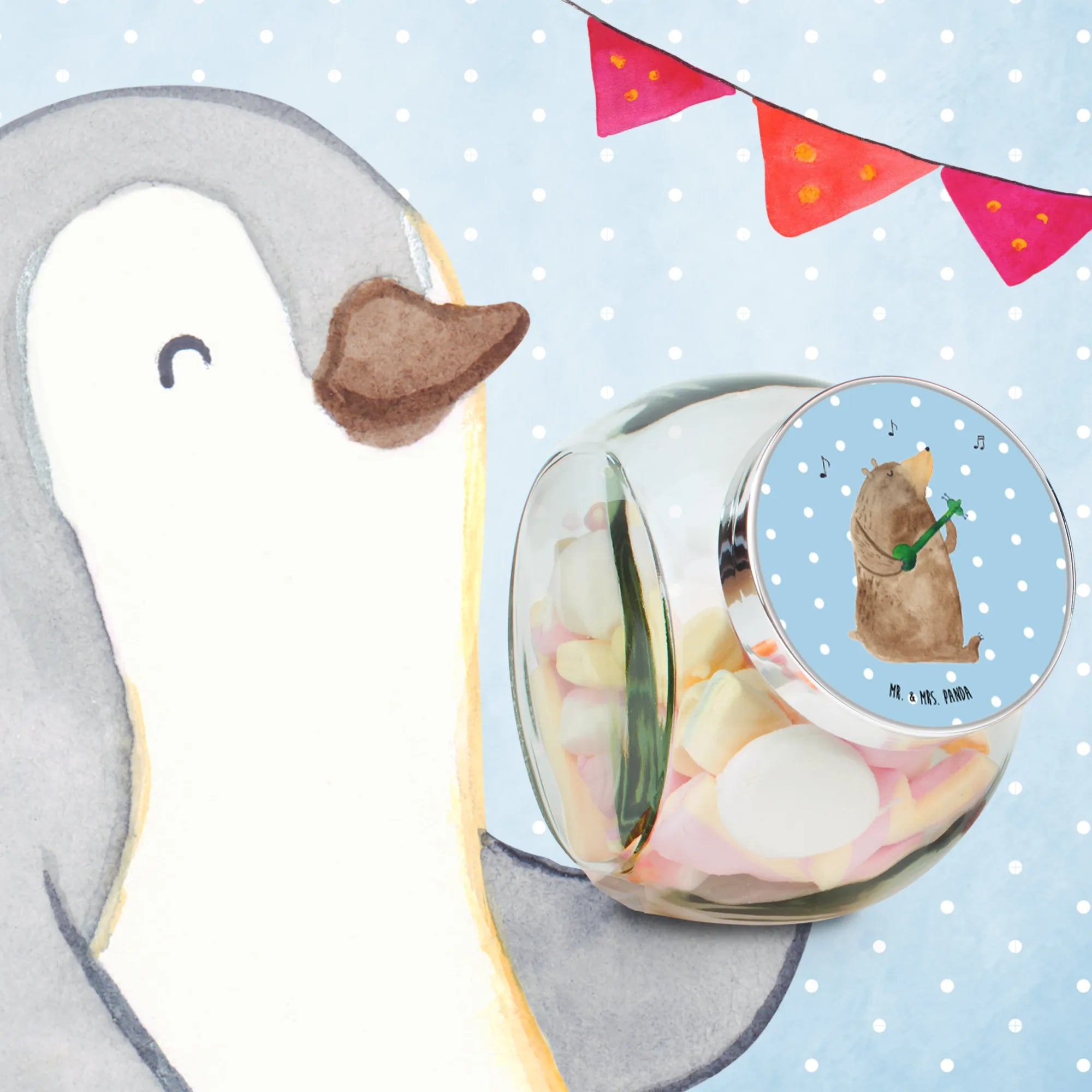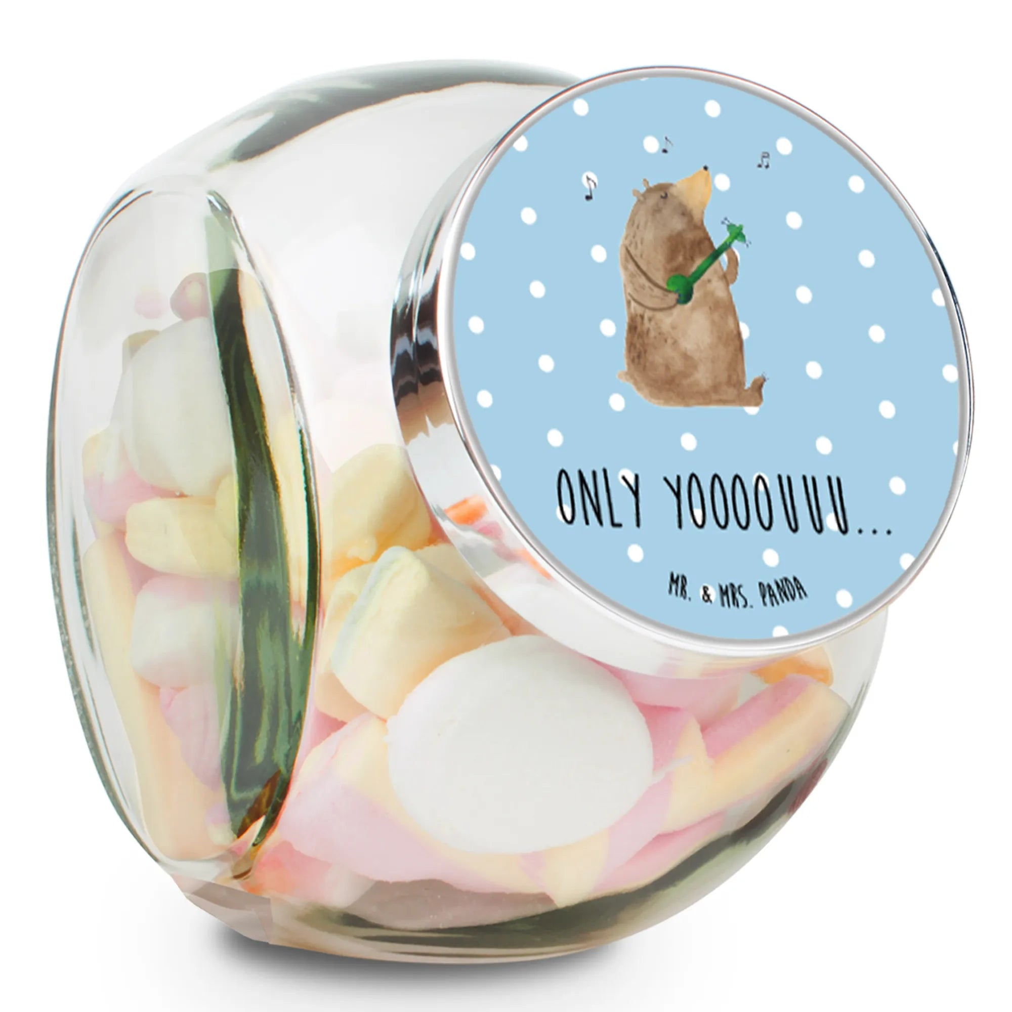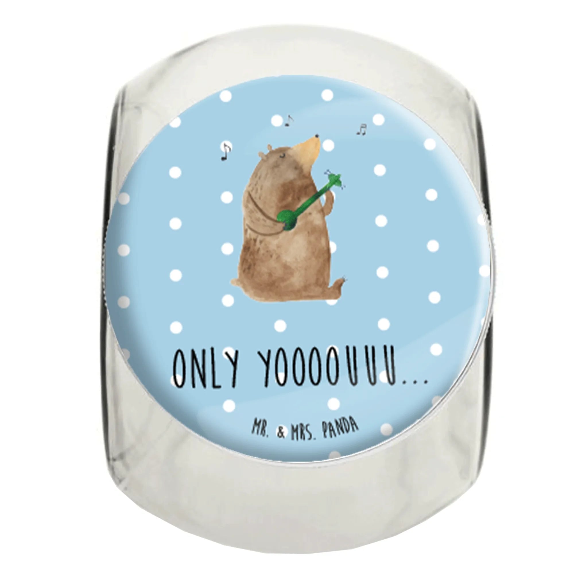 Das wunderschöne Bonbonglas von Mr. & Mrs. Panda mit dem Motiv 'Bär Gitarre' ist das perfekte Geschenk für alle Musikliebhaber und Naschkatzen! 🎸