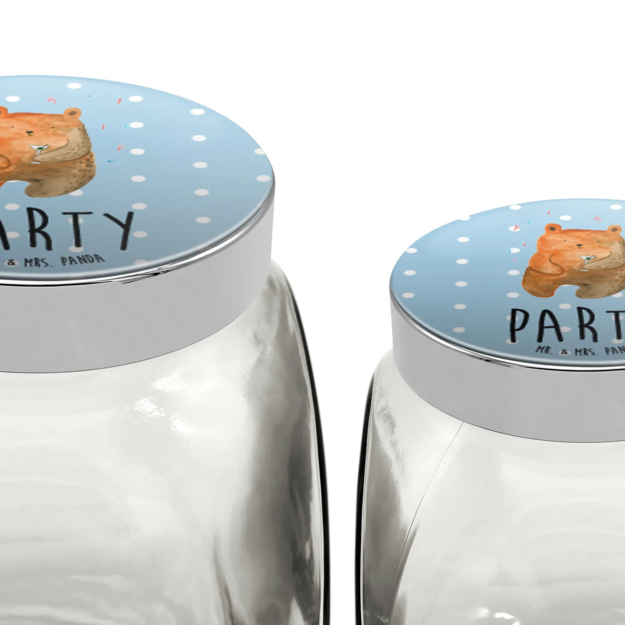 Das wunderschöne Bonbonglas mit dem süßen Motiv "Bär Party" aus der Kollektion von Mr. & Mrs. Panda ist das ideale Geschenk für all deine Freunde und Familie, die das Leben und die kleinen Feierlichkeiten lieben! Es ist der perfekte Aufbewahrungsbehälter, um deine Lieblingssüßigkeiten, Kekse, Kaffee oder Tee nicht nur stilvoll, sondern auch frisch zu halten.
