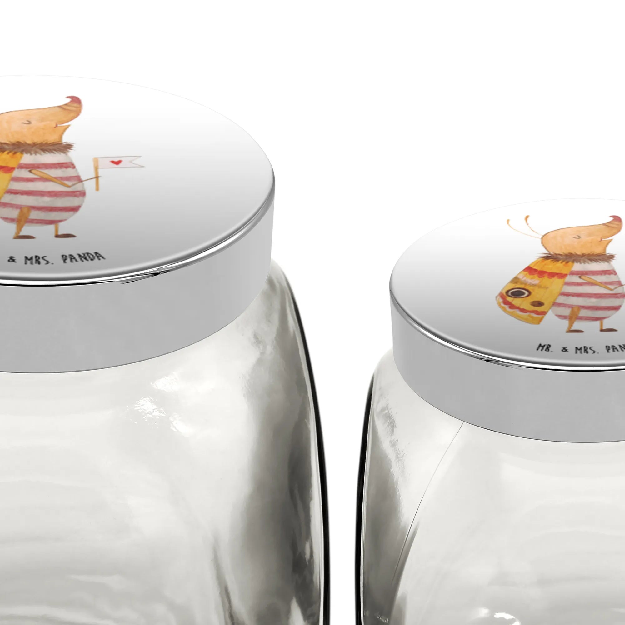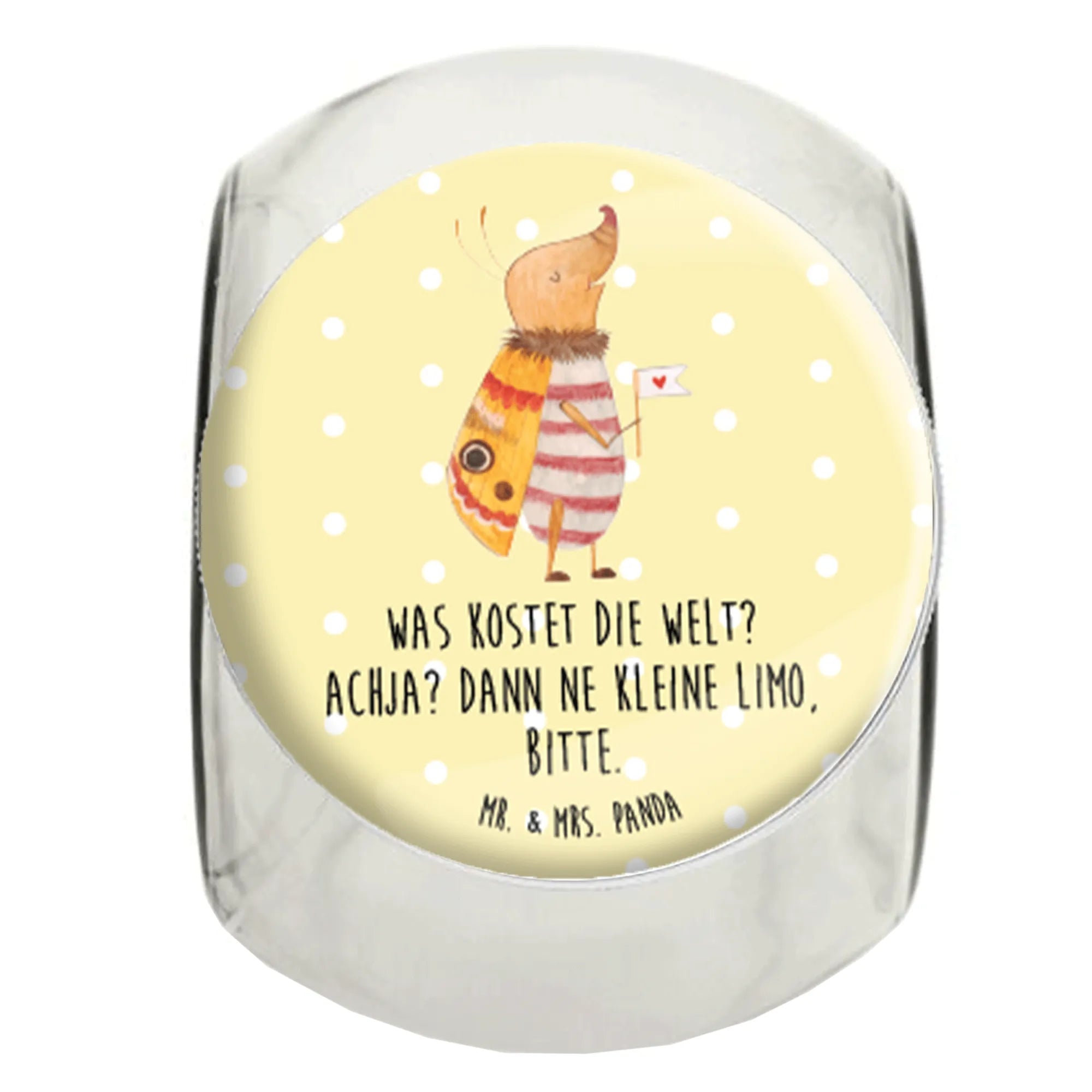 Das wunderschöne Bonbonglas mit dem niedlichen Motiv "Nachtfalter mit Fähnchen" aus der Small World Kollektion von Mr. & Mrs. Panda ist der perfekte Küchenhelfer und Blickfang zugleich. Es bietet nicht nur ausreichend Platz für all deine Leckereien, sei es Bonbons, Kekse, Müsli oder Tee, sondern bringt auch ein Stück Freude in deine Küche.