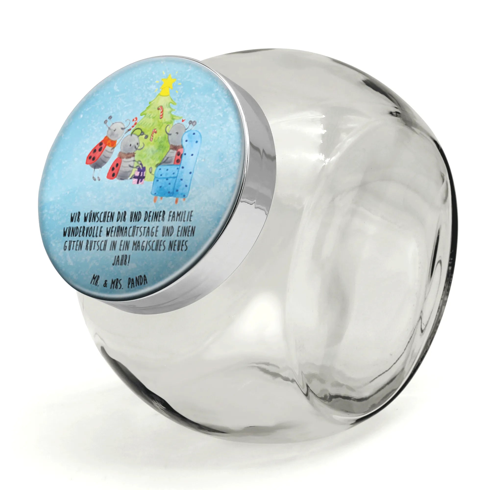 Egal ob als dekorative Aufbewahrung für Süßigkeiten, Kekse oder Gewürze, dieses Glas erfüllt jeder Küche einen warmen, festlichen Charme. Die liebevoll gestaltete Szene zeigt fröhliche Marienkäfer, die um einen festlich geschmückten Weihnachtsbaum herum tüfteln. Ein wirklich magisches Motiv, das Erinnerungen an die Kindheit weckt und die Vorfreude auf die besinnlichen Tage steigert.