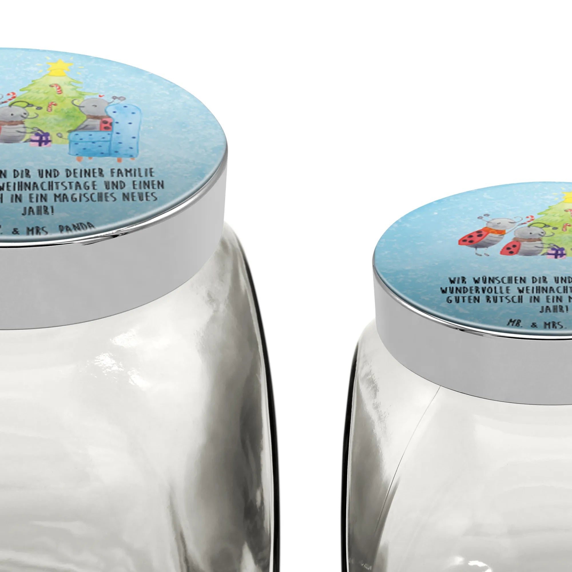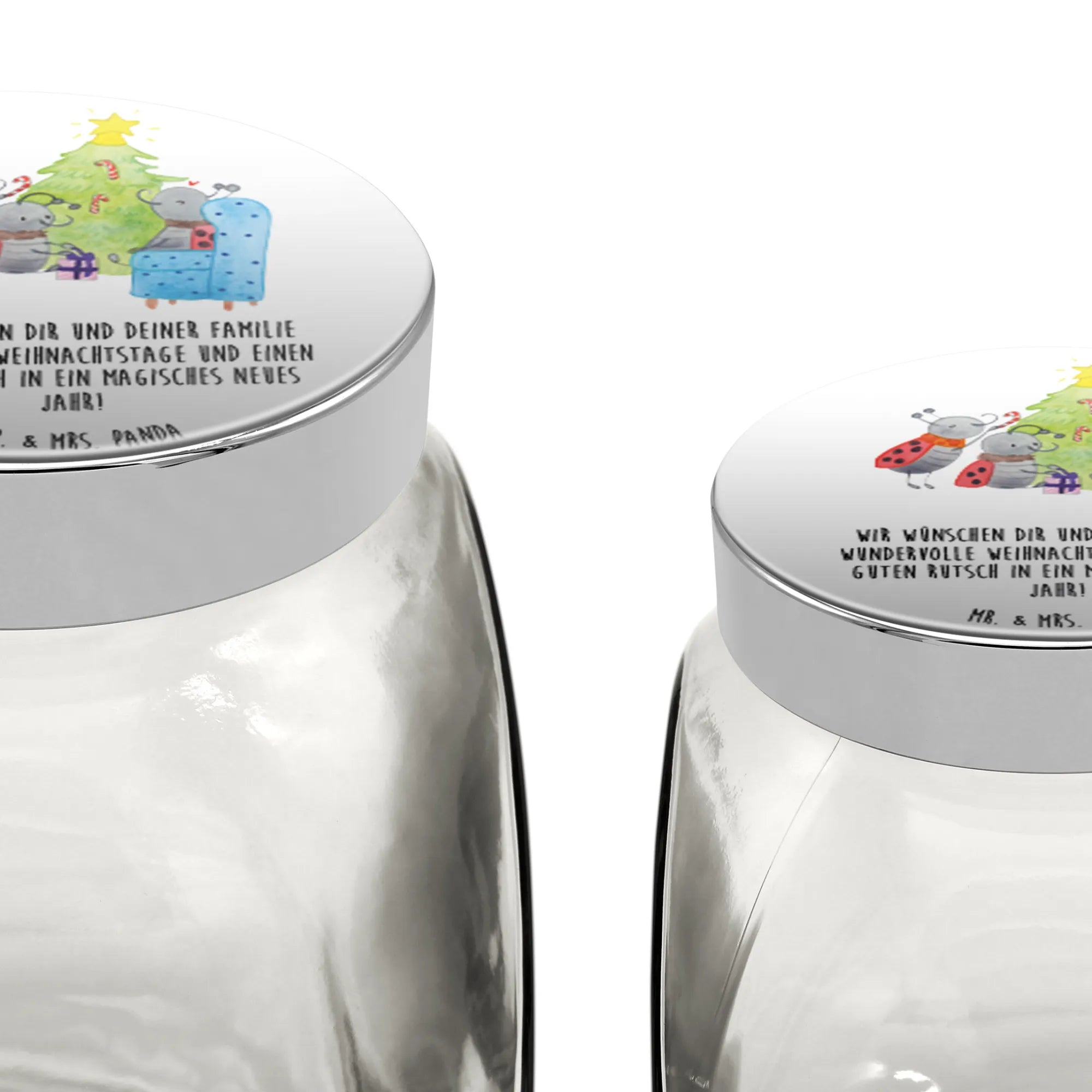 Mit dem liebevollen Slogan „Wir wünschen dir und deiner Familie wundervolle Weihnachtstage und einen guten Rutsch in ein magisches neues Jahr!“ ist das Glas noch persönlicher und ein ideales Präsent für deine Lieben. Egal, ob du es für deine Weihnachtsdeko verwenden oder es einfach nur selber behalten möchtest, dieses Bonbonglas ist ein echtes Must-Have der ruhigen, besinnlichen Zeit. Lass dich von der magischen Weihnachtsatmosphäre inspirieren und genieße die besinnlichen Momente mit einem Stückchen Süßigkeit oder einem knusprigen Keks. Verwandle deine Küche oder dein Wohnzimmer in ein Weihnachtswunderland mit diesem zauberhaften Bonbonglas von Mr. & Mrs. Panda.