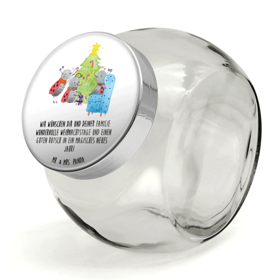Das wunderschöne Bonbonglas Weihnachten Smörle von Mr. & Mrs. Panda ist das perfekte Geschenk in der besinnlichen Winterzeit. Mit einem bemerkenswerten Füllvolumen von 2000 ml bietet es genügend Platz für all deine Lieblingssüßigkeiten, Kekse, Kaffee oder Tee. Die liebevoll gestaltete Wintermotivrepräsentation zeigt eine zauberhafte Szene, auf der drei fröhliche Marienkäfer um einen festlich geschmückten Weihnachtsbaum herumtollend agieren. Sie schmücken den Baum mit Pfefferminzstangen und legen Geschenke darunter, weshalb dieses Glas nicht nur dekorativ ist, sondern auch ein wahres Highlight auf jedem Weihnachtstisch darstellt.