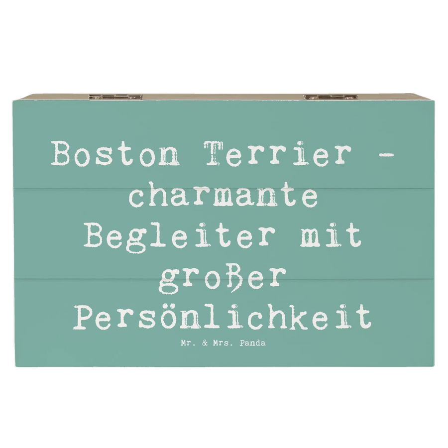 Die wunderschöne Holzkiste von Mr. & Mrs. Panda mit dem Motiv "Boston Terrier - charmante Begleiter mit großer Persönlichkeit" ist das perfekte Geschenk für alle Hundefans! Diese dekorative Kiste ist nicht nur ein stilvoller Hingucker, sondern auch ein praktischer Aufbewahrungsort für all deine Schätze.